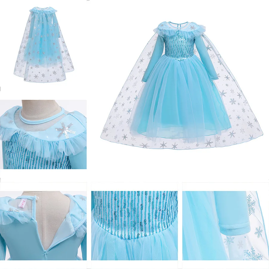 Carnival CostumeElsa Snow Queen Sequined Frocks with Cape