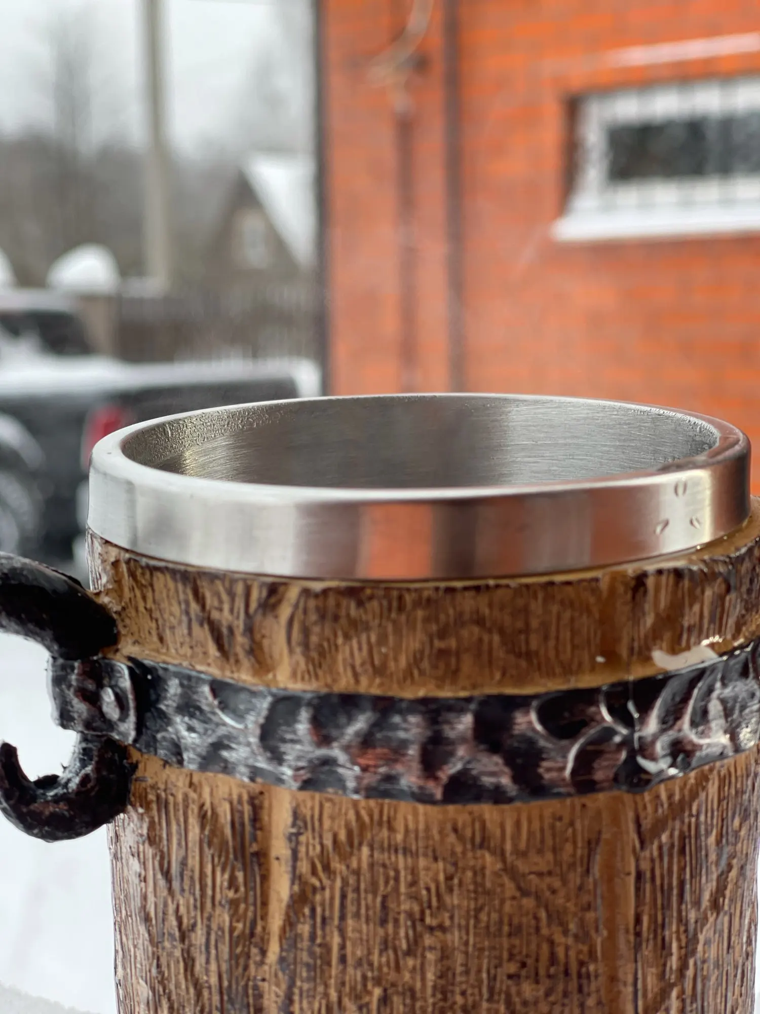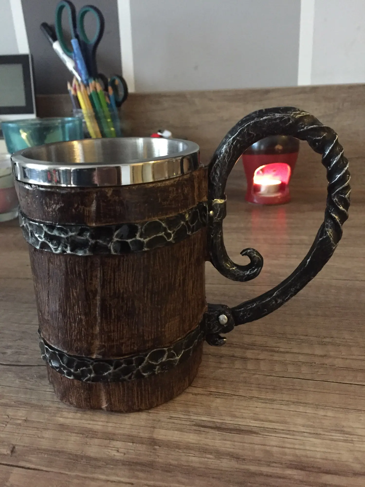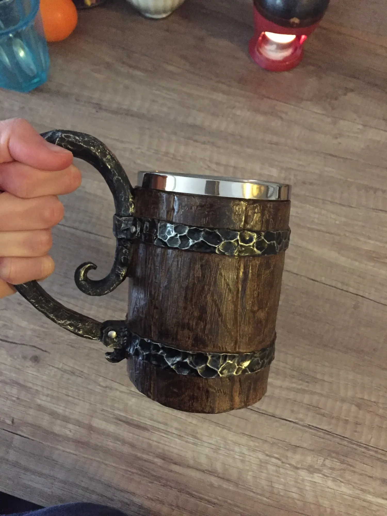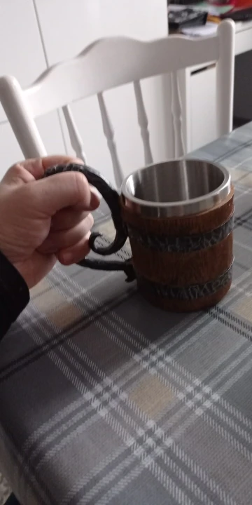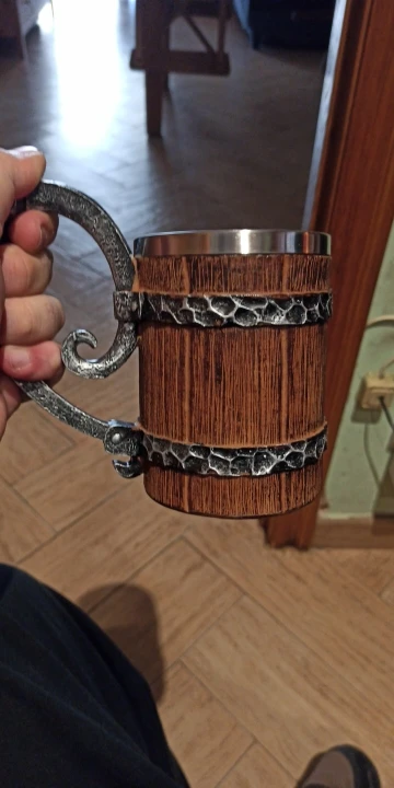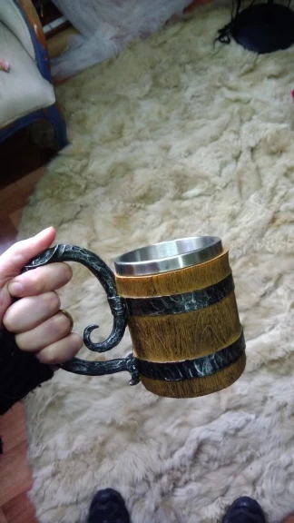 Получил кружку "Викингов" деревянную... Не хрена она не деревянная, это пластик и ручка "левая" типа метал... На самом деле, может и метал, но силумин, или в том роде, но не массив, как я предполагал! Короче смотрится нормально, я коллекционирую такие пивные кружки, но эта... Легкая пластиковая херня, а на вид... Кружка блядь " Викингов"...)))
