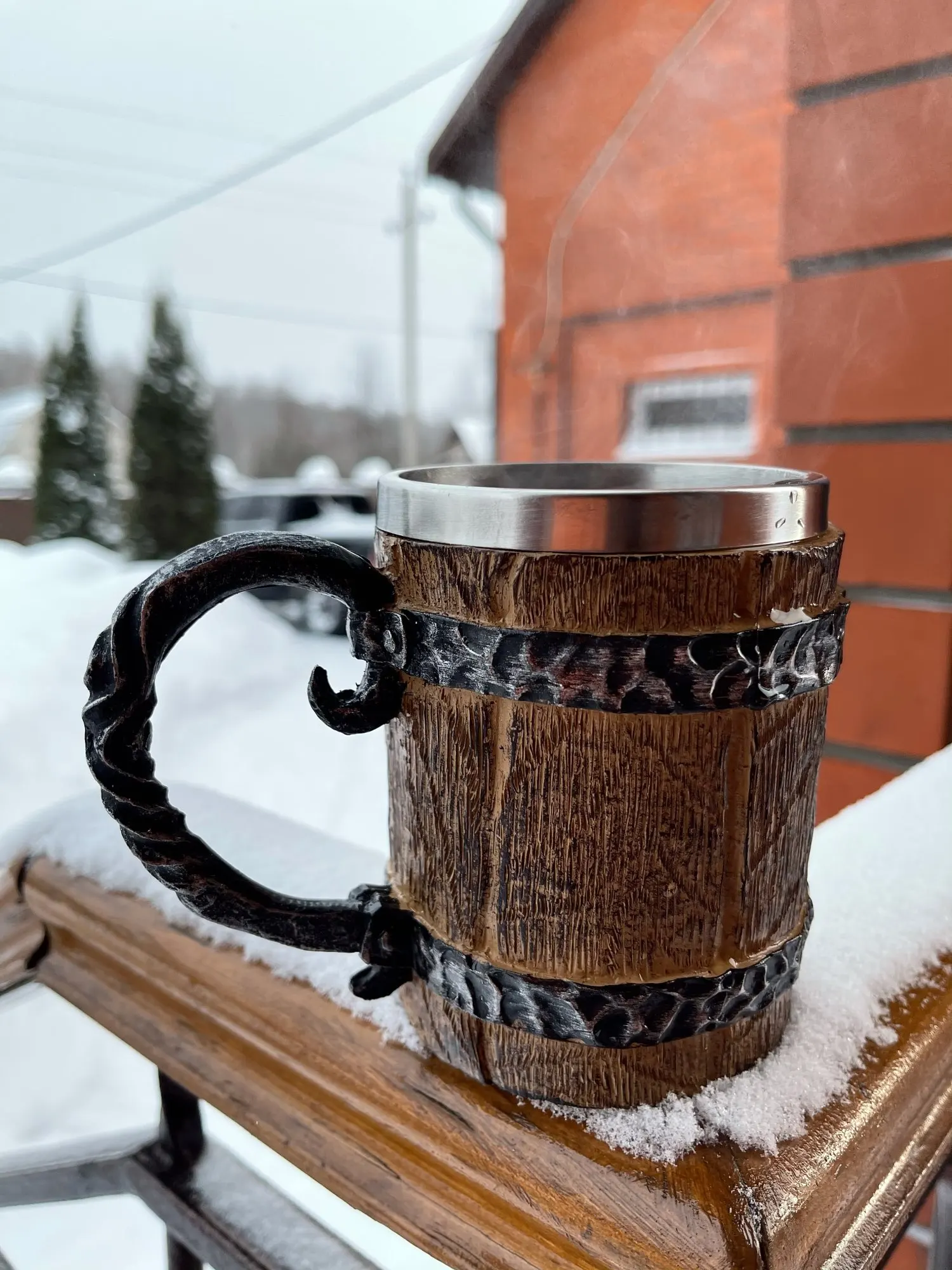 Кружка для пива в стиле викингов деревянная, имитация деревянного корпуса, Двухстенная, металлическая Изолированная, 1 шт., для бара