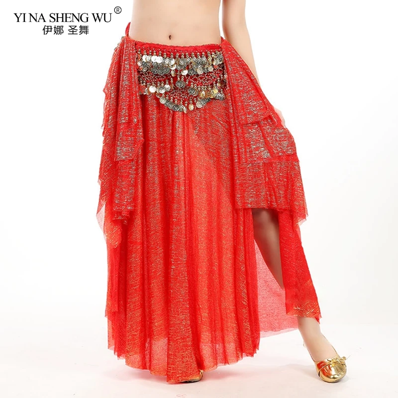 Женская юбка для танца живота, длинная юбка-макси с оборками, аксессуар для бронзового цвета, 10 цветов, тканевые юбки