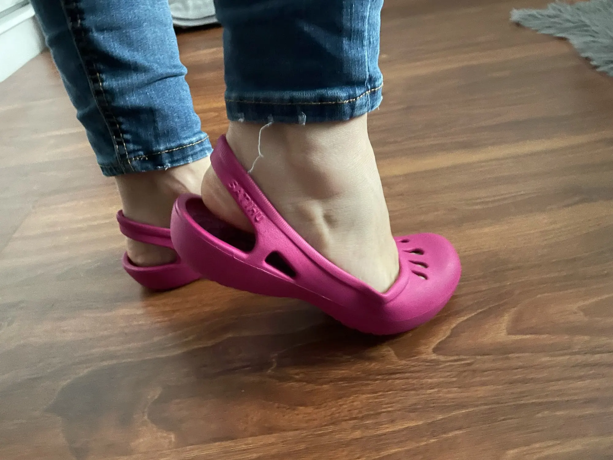 Покупаю в третий раз. Для дождливой погоды самое то. Чуть жёстче, чем CROCKS, но не смертельно, подошва снашивается по времени также, а цена в 3 раза меньше. CROCKS беру W7, эти W8. ⭐⭐⭐⭐⭐