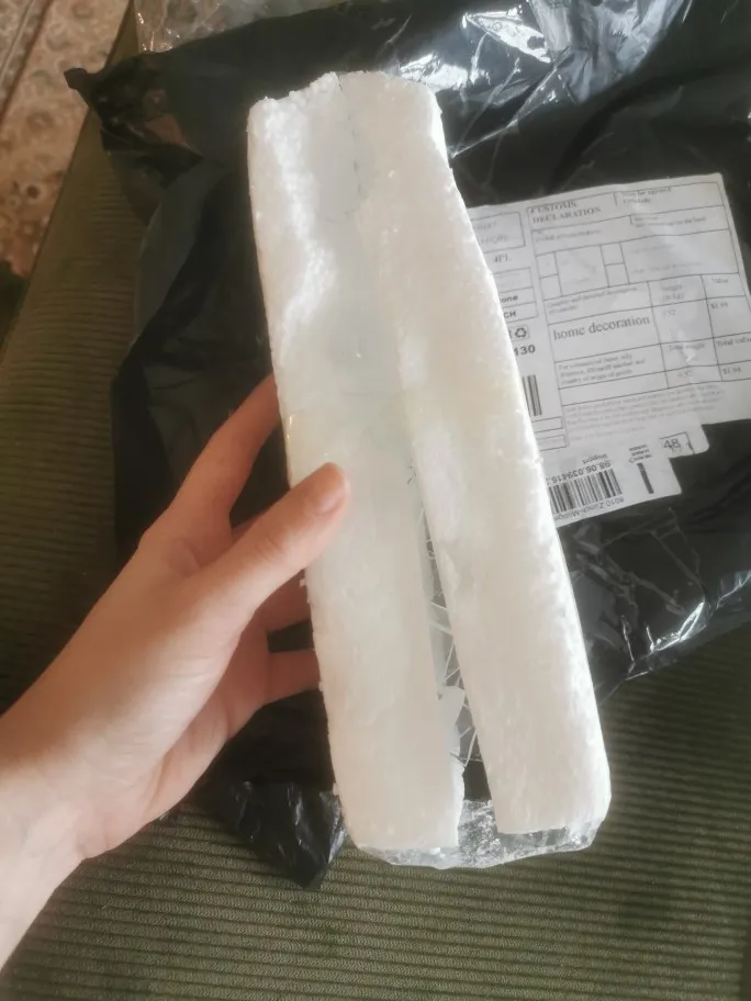 Прибыл сюда через несколько дней, чем ожидалось. Но оно того стоит, что ничего не сломалось. Все было хорошо, и был даже дополнительный крючок для стены, а также маленькие пузырьки для украшения.