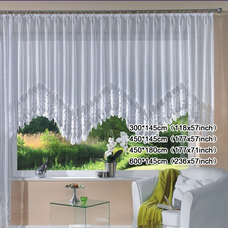 Европейский Романтический стиль, вязаная жаккардовая арочная занавеска, полузатенение, белая кружевная занавеска, большой размер