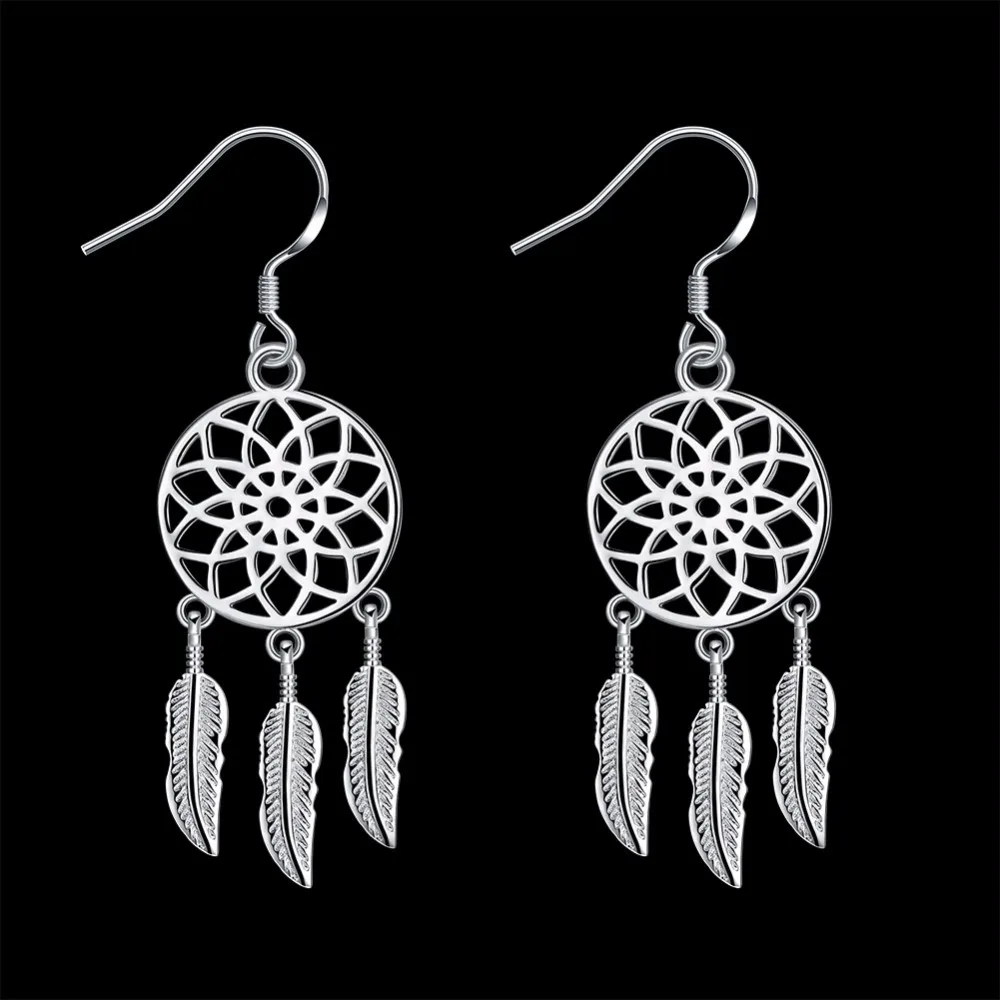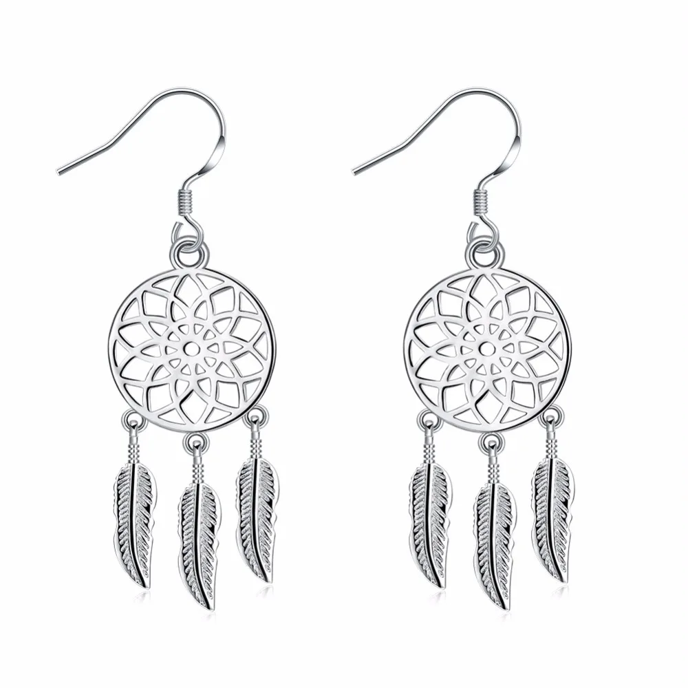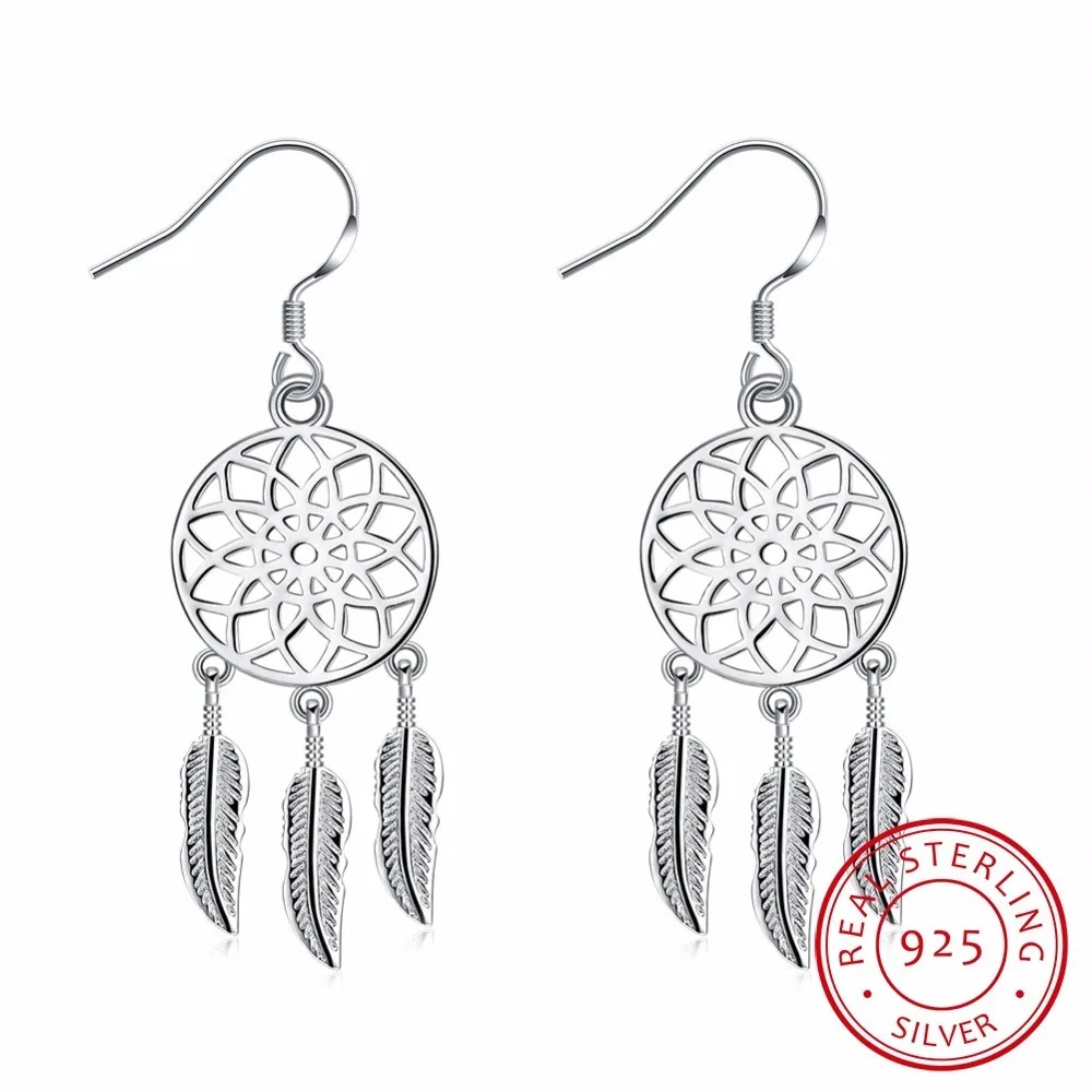 LEKANI 925 стерлингового серебра с шейным перо Ловец снов серьги в ...
