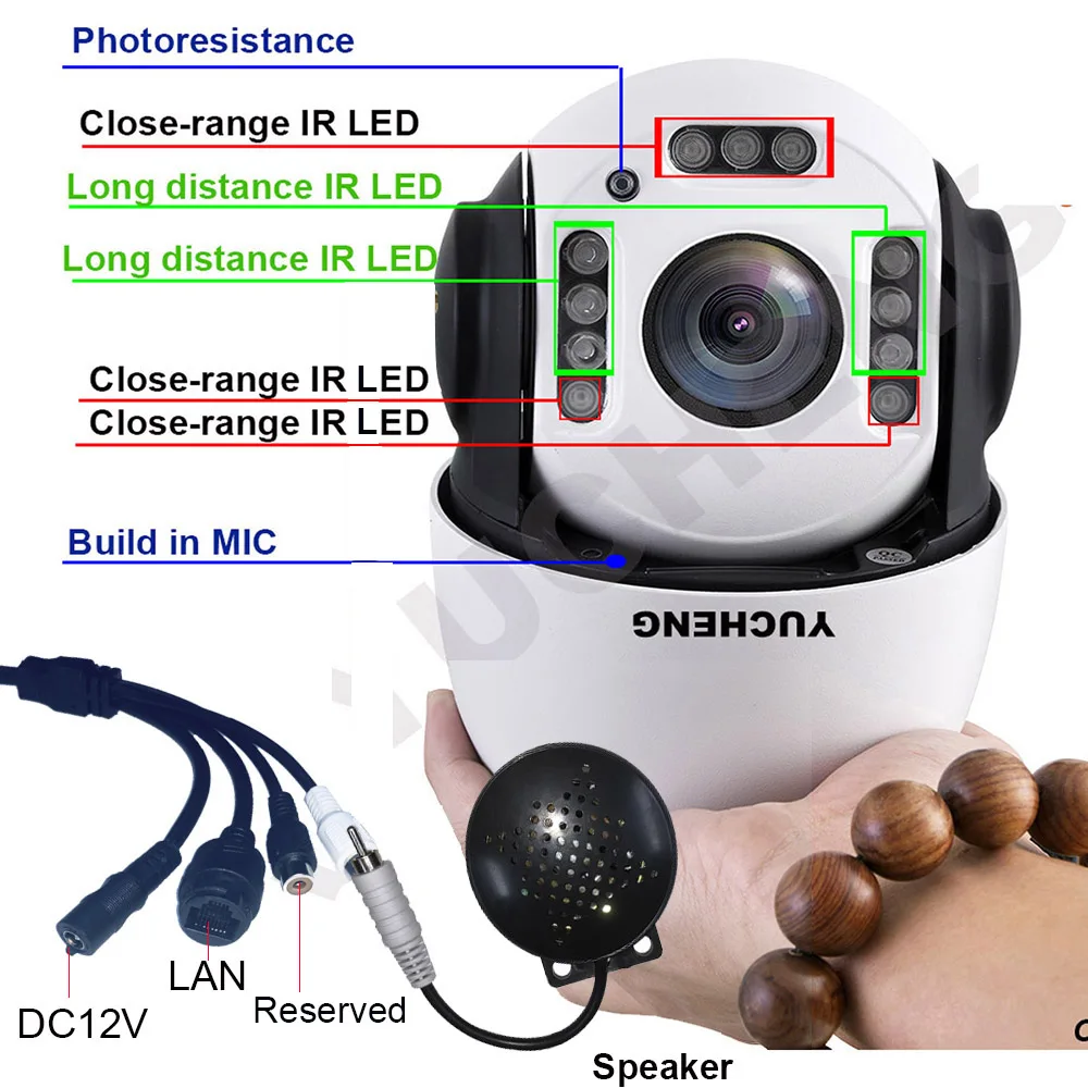 11 мощных инфракрасных светодиодов, групповое управление, инфракрасное расстояние 100 метров