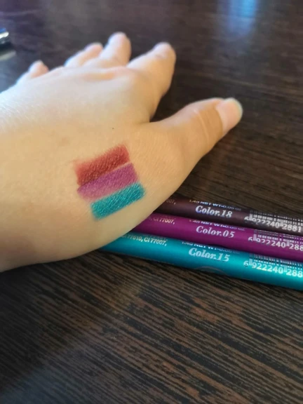 Ожидала большего от этих карандашей, я конечно понимаю, что за такую цену грех жаловаться, но уж очень слабенькая у них пигментация, особенно у белого,вообще практически не видно, на фото должно быть видно. Учитывая, что я неоднократно проводила карандаш по руке, чтобы хоть что-то было видно, скорее всего на веках вообще не будет видно. Из-за этого снимаю звезду. Продавца рекомендую, а вот карандаши себе такие уже бы не взяла.
