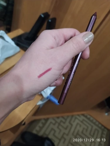 Очень богатая пигментация, легко скользит, остается на 12 + часов.