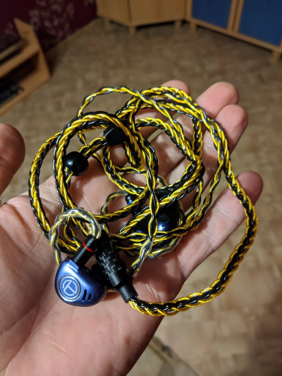 Я не ожидал такого кайфа, звук на уровне дорогущих Earsonics sm64, которые я продал лет 5 назад и пожалел. Но теперь не жалею, TRN V90 более универсальные, я в них и музыку слушаю, и мониторю игру на гитаре, и в игры играю. Звук сказка! Провод T1 очень крутой, крепкий и качественный. Наушники после 20 часов прогрева раскрылись совсем другим звуком. Сцена приятная, ничего не раздражает, инструменты ощущаются не в ушах, а где-то в воздухе на расстоянии, как будто сидишь в студии и вокруг тебя музыканты) Короче кайф. Спасибо продавцу за быструю отправку, в Калининград посылка пришла за 5 дней, невероятно!