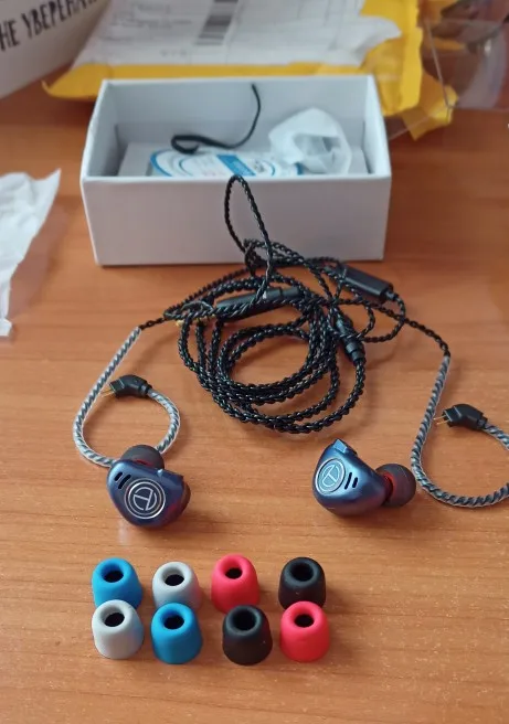 Очень быстрая доставка. Звук просто великолепен. После KZ ZS10pro было сначала неоднозначное впечатление - прекрасные верха, но не совсем понятная середина и какой-то глухой бас. Однако, после прогрева динамического драйвера, где-то через часов 5, и подбора под свои уши комплектных амбушюр звук стал шикарен. Бас хлёсткий, детальный и в то же время глубинный, на средние не лезет (в отличие от оного в zs10pro), средним не мешает. Сами средние детальные, хорошая реверберация, ощущается ширина звуковой сцены. Высокие прекрасны, я хоть и не ВЧ-фоб, но все равно сибилянтов не услышал, говорят, в этом моменте важны правильные амбушюры. Комплектный кабель звук не портит, но очень сильно путается, возможно, заменю на многожильный. Слушал flac и dsd со смартфона в связке со свистками ibasso dc02и dc03 через uapp и hiby music в режиме bit perfect. Рок не слушал, электроника в этих наушниках прекрасно звучит вся, от эмбиента до индастриал