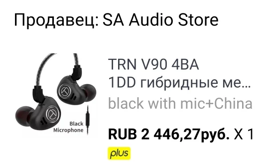 Купил за 2600 +кабель 650 TRN .Боялся за качество.Плюс продавец положил силиконовые амбушуры.Ни жалею о потраченной сумме. Все вместе дает великолепное звучание на сумму в разы дороже.Качество достойное.Хотите наслаждаться звуком берите не пожалеете.
