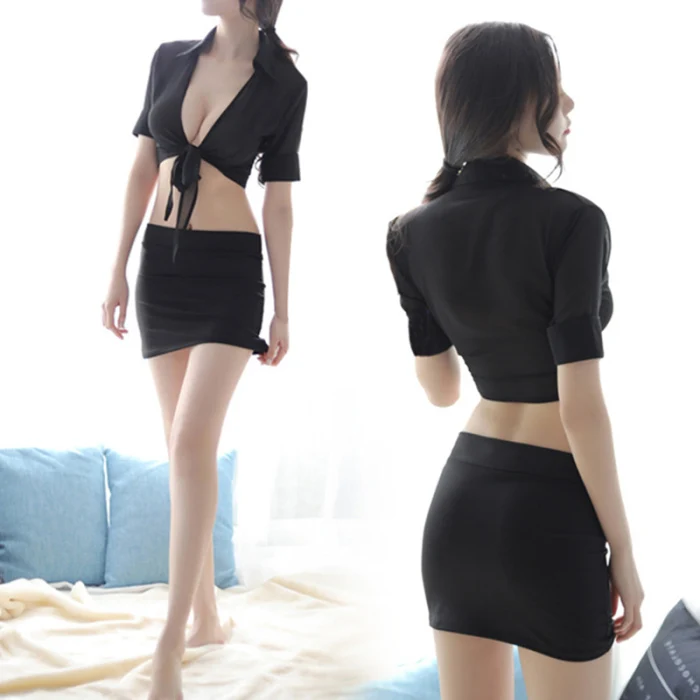 2 шт., сексуальное женское нижнее белье, костюм секретарши, костюм для косплея, топ, юбка, комплект AIC88