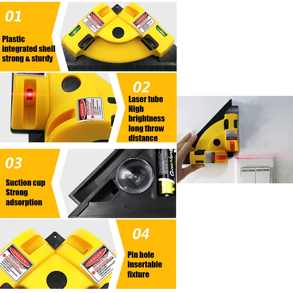 Лазерный уровень, прямоугольный, 90 градусов, вертикальный и горизонтальный лазер градусов, для настенной плитки