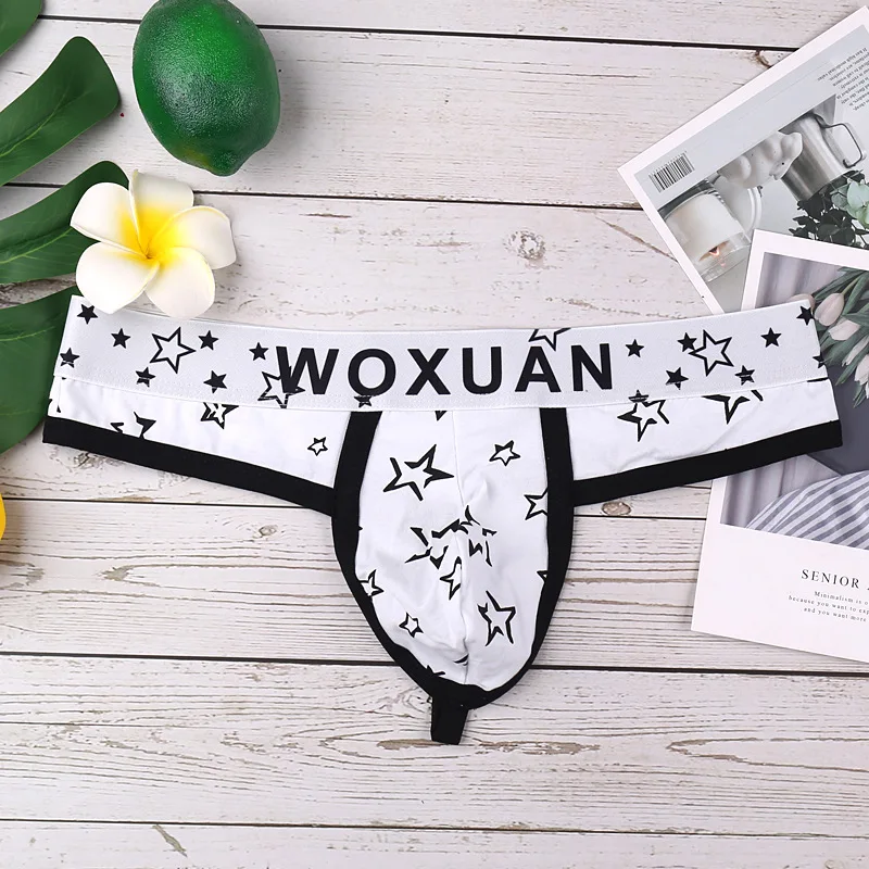 Трусы-стринги мужские, Лайкра, Хлопок, с принтом, с U-образным выпуклым мешочком, сексуальное нижнее белье для геев, M-XXL
