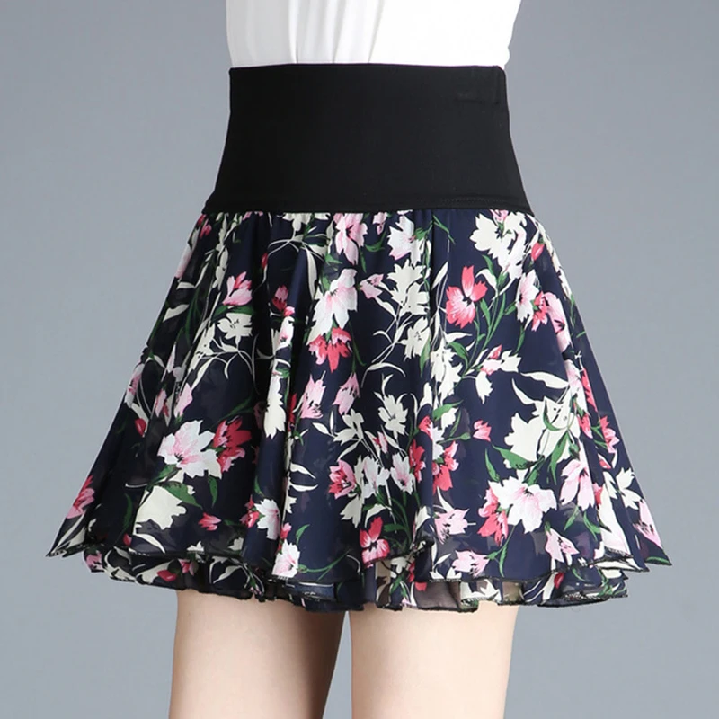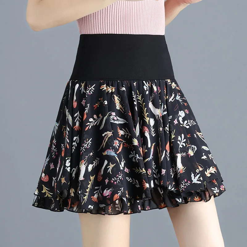 Юбка женская шифоновая с эластичной завышенной талией, черная плиссированная короткая Милая школьная мини-юбка для девушек в японском стиле, C474