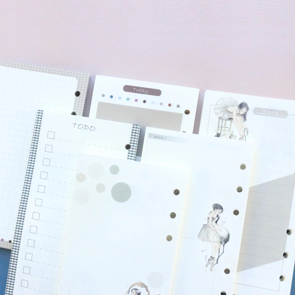 Бумажный лист для ежедневника, на спирали, 6 отверстий