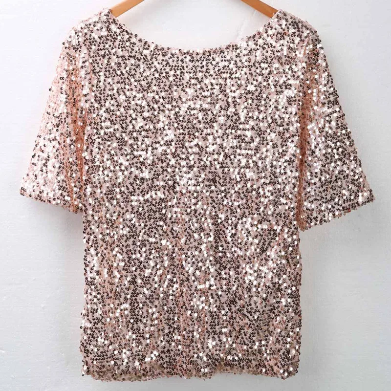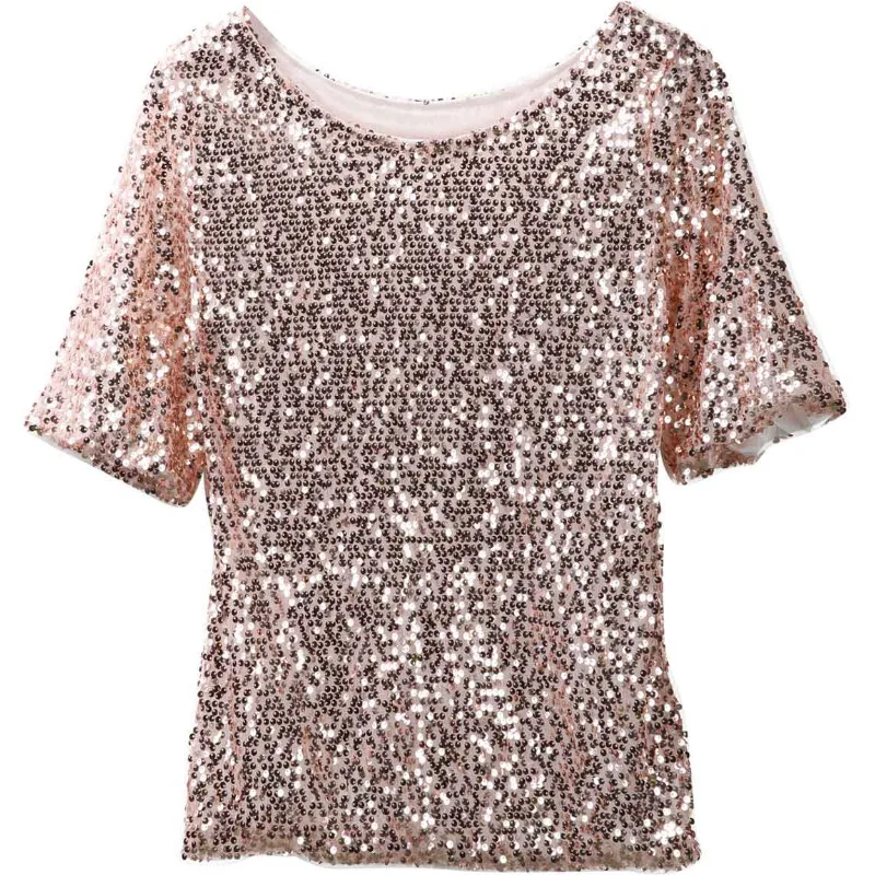 Женские Блестящие модные повседневные топы с коротким рукавом и блестками, вечерние топы с блестками, рубашка