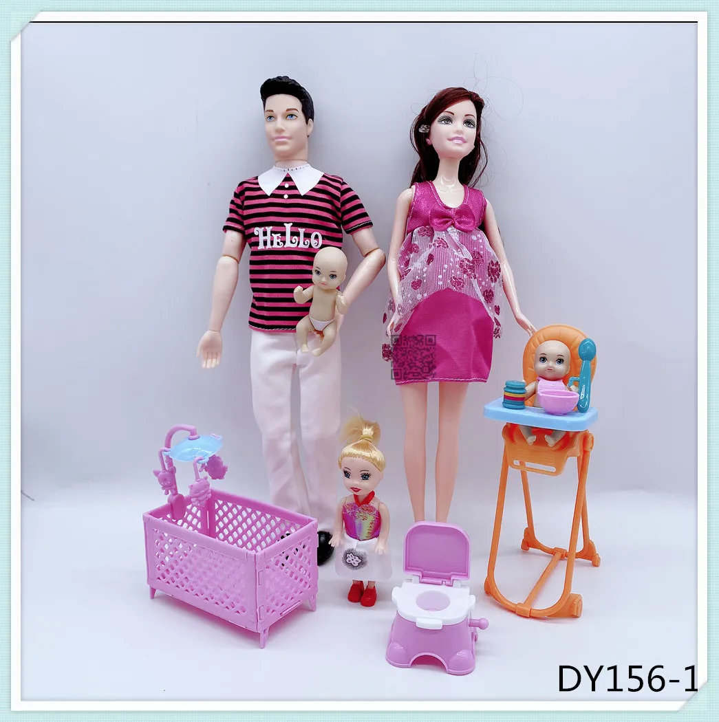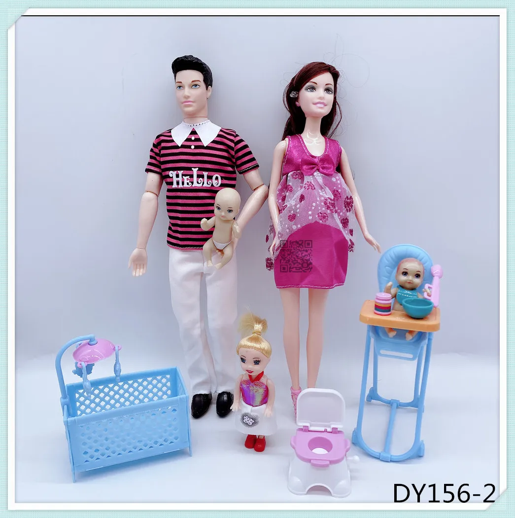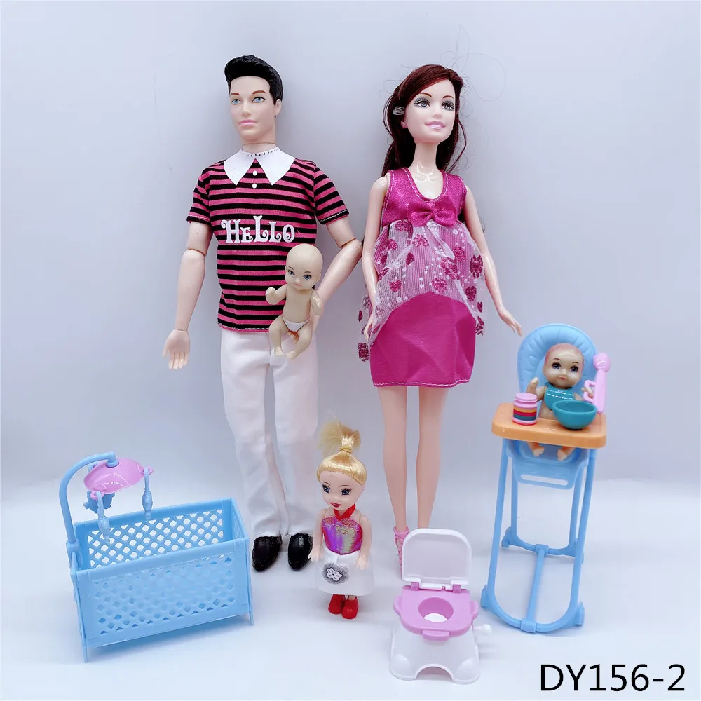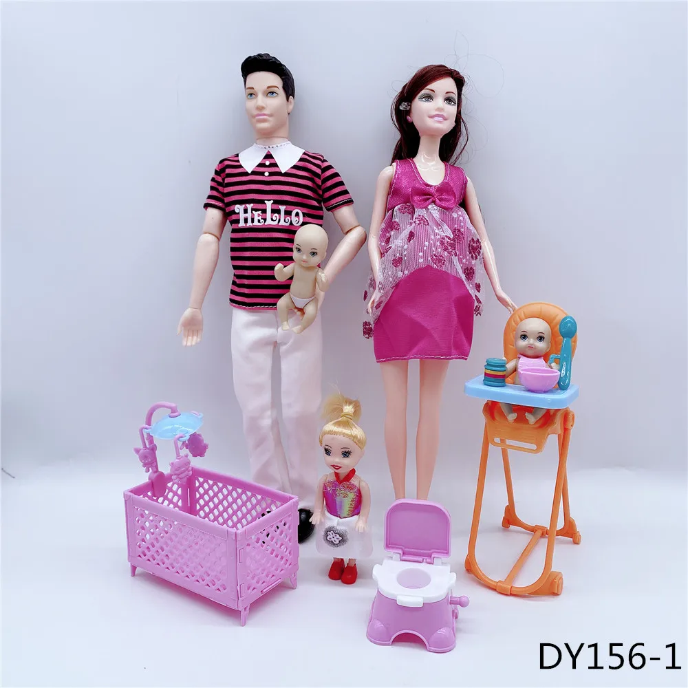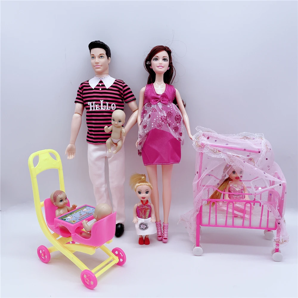 Кукольные костюмы для семьи на 6 человек, мамаПапасынмалышКелликоляска, модные игрушки для девочек, куклы детские игрушки для беременных, подарок на день рождения