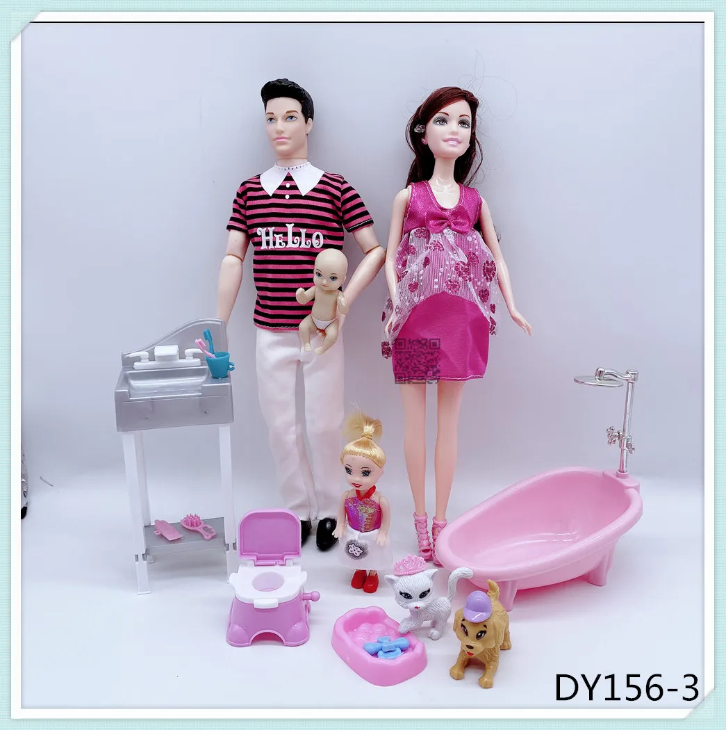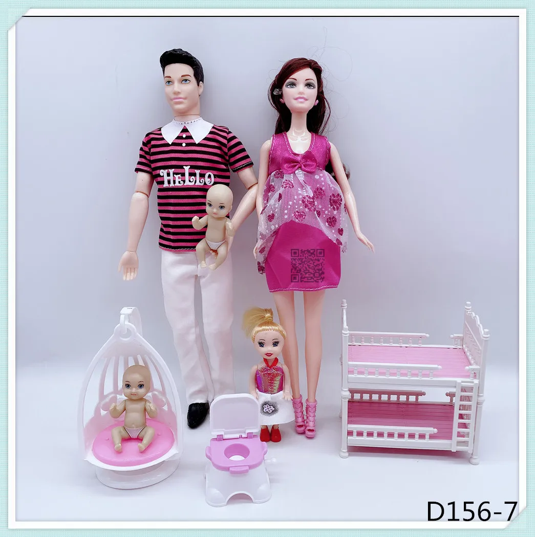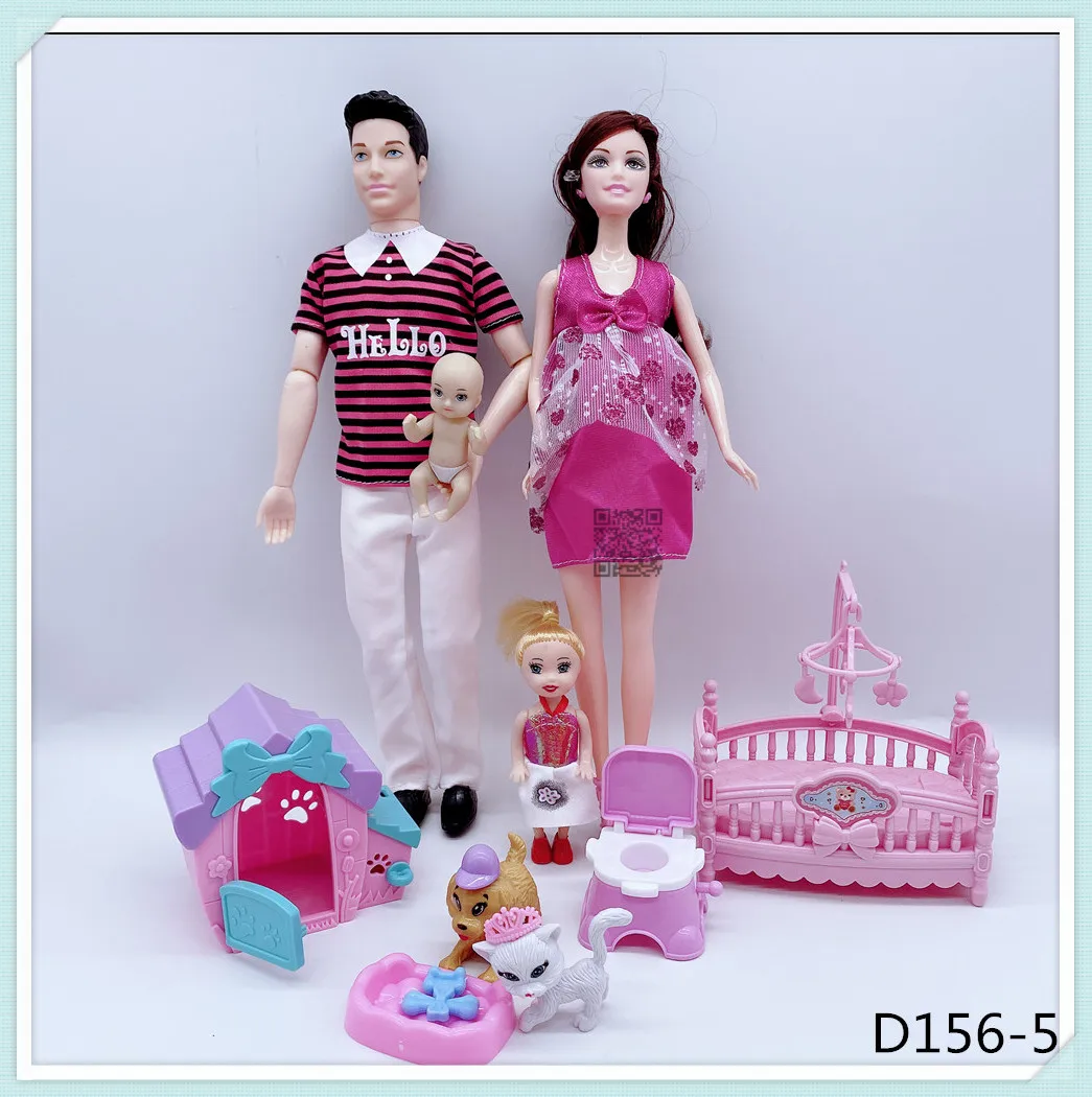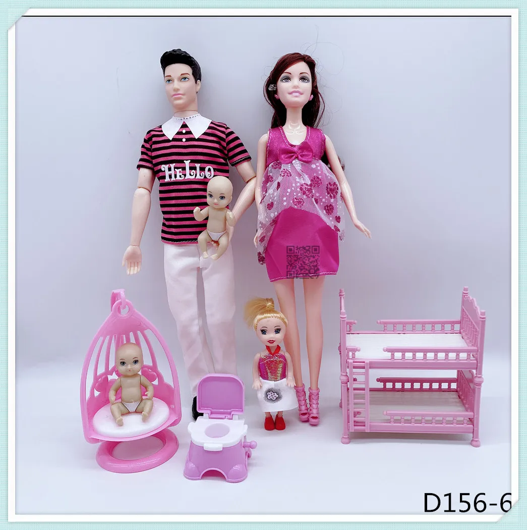 Кукольные костюмы для семьи на 6 человек, мамаПапасынмалышКелликоляска, модные игрушки для девочек, куклы детские игрушки для беременных, подарок на день рождения