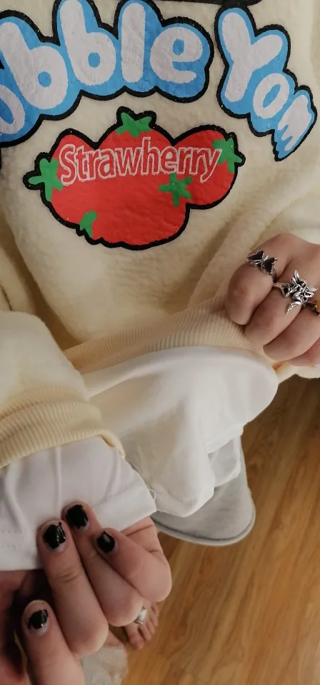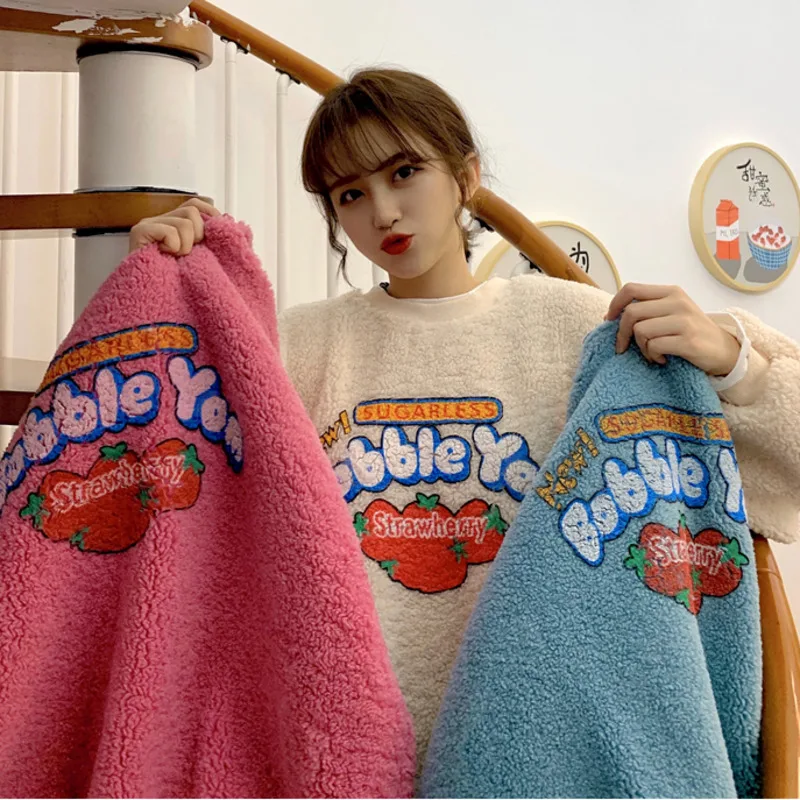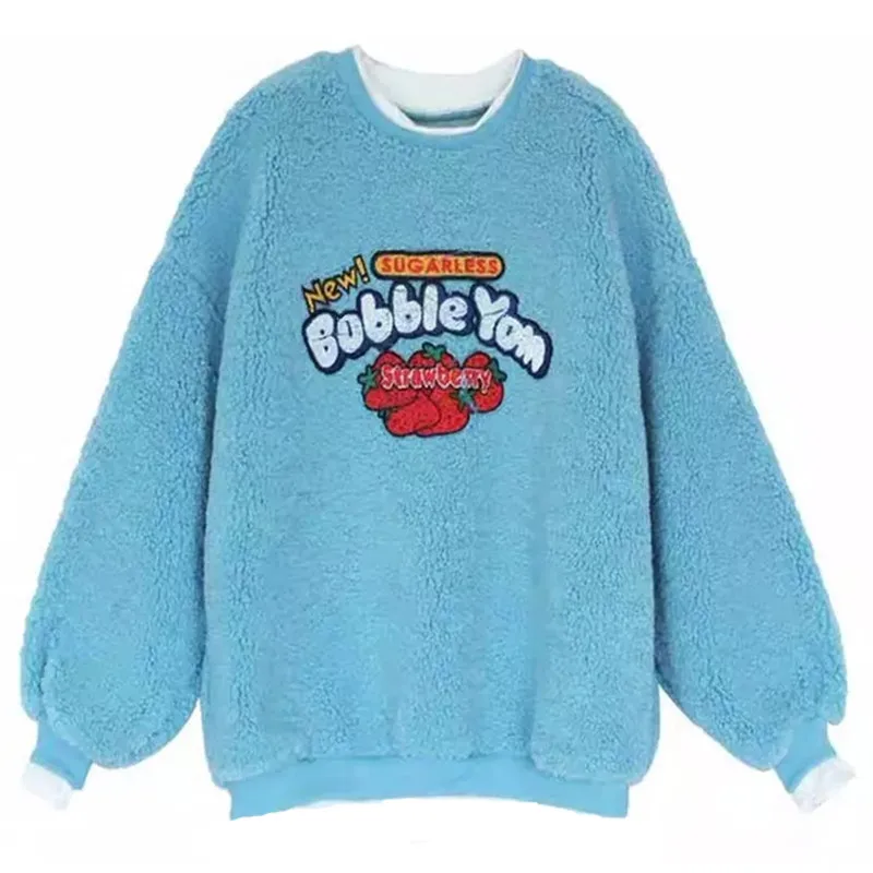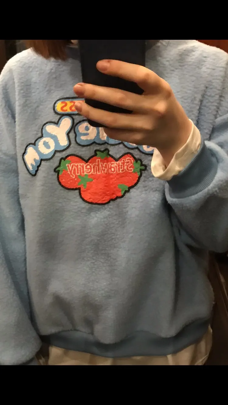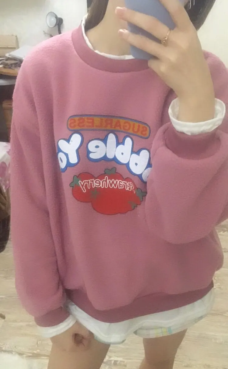 Толстовка Женская флисовая с капюшоном, 2 шт., с имитацией клубники, пуловер с капюшоном, свитер осень зима, S-2XL