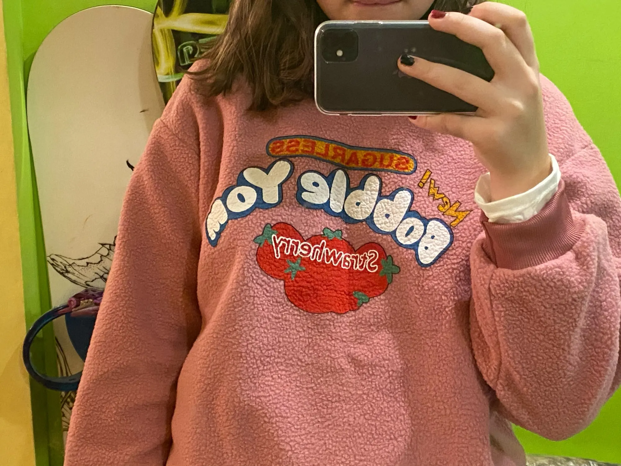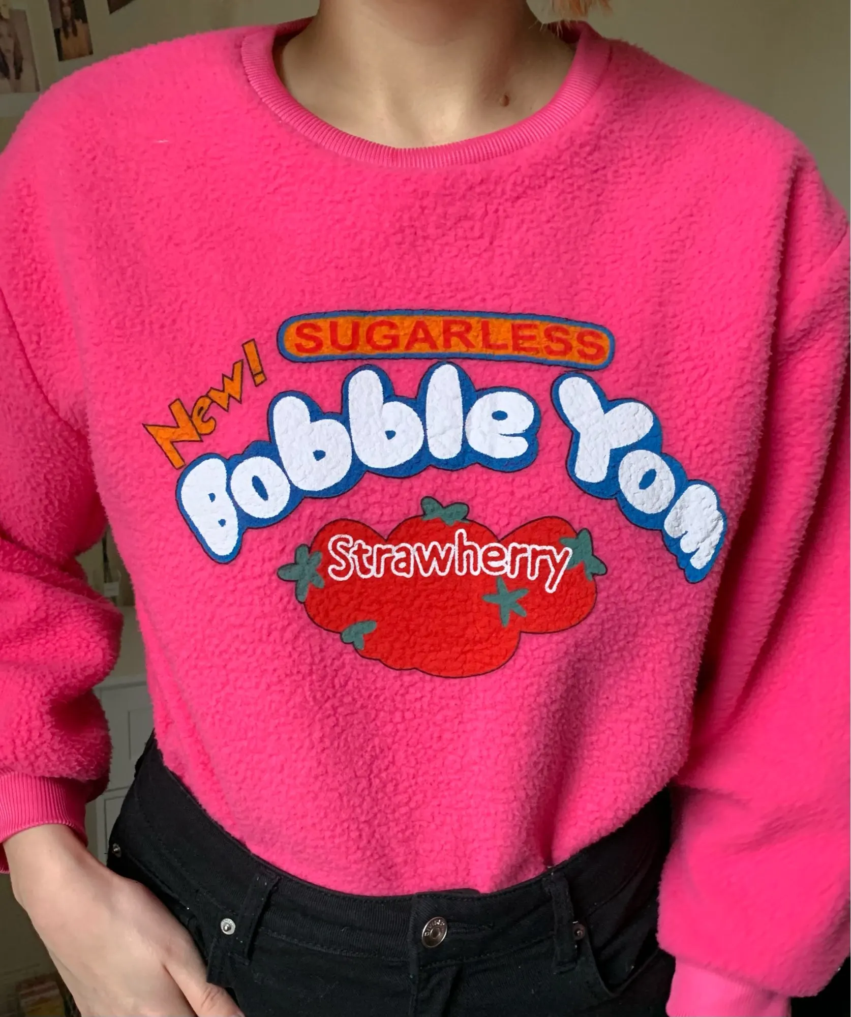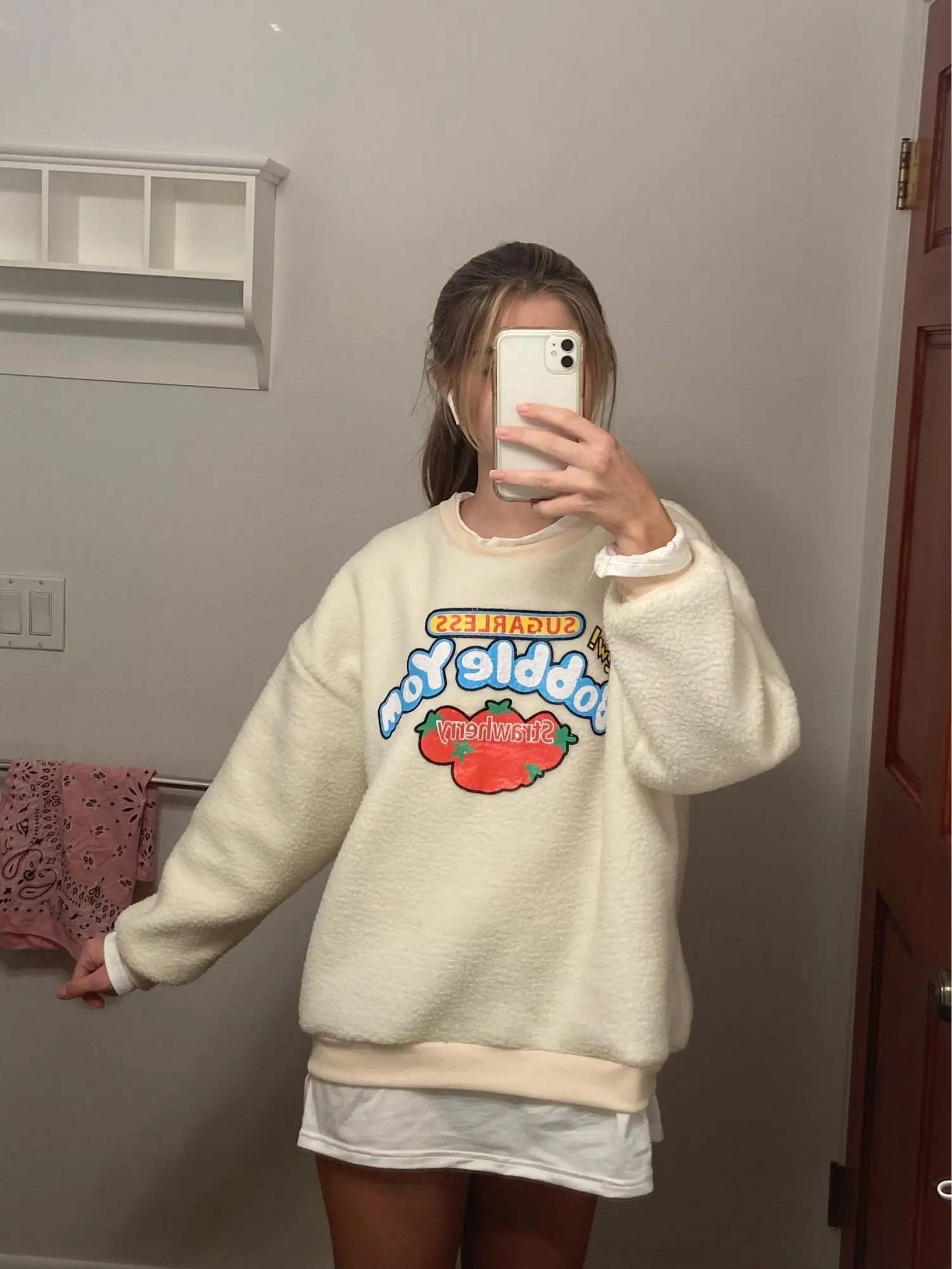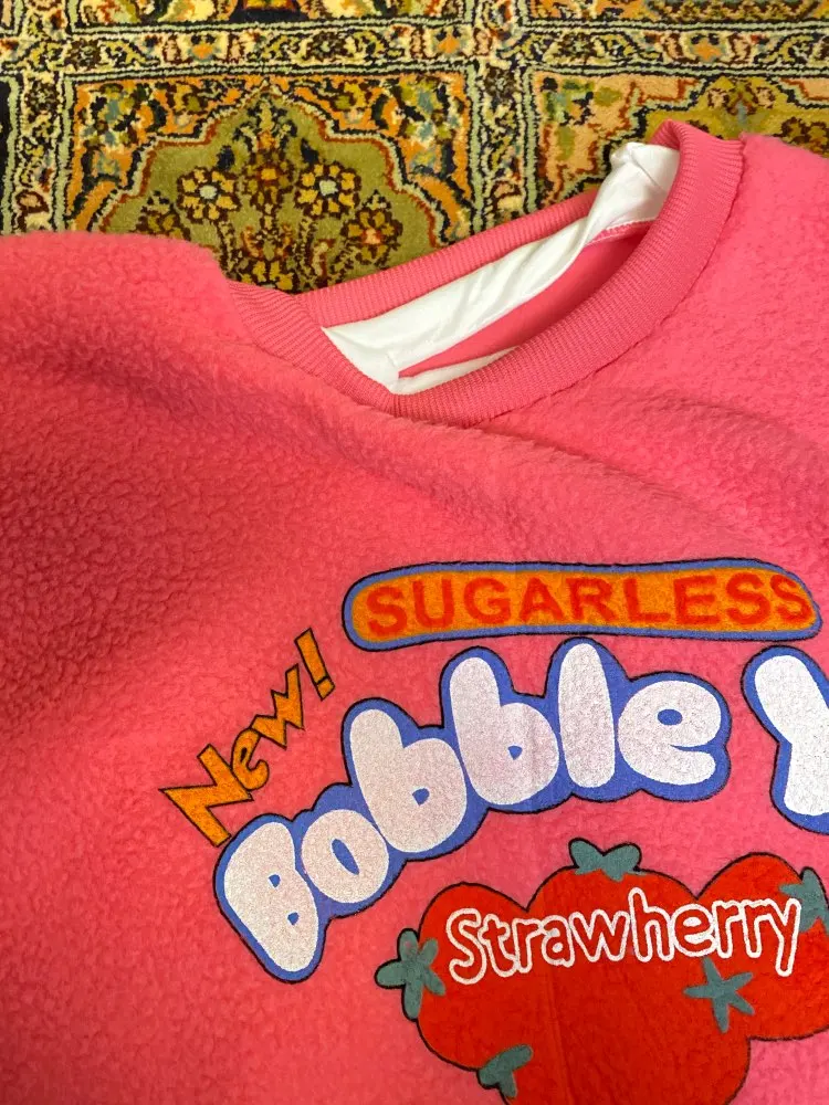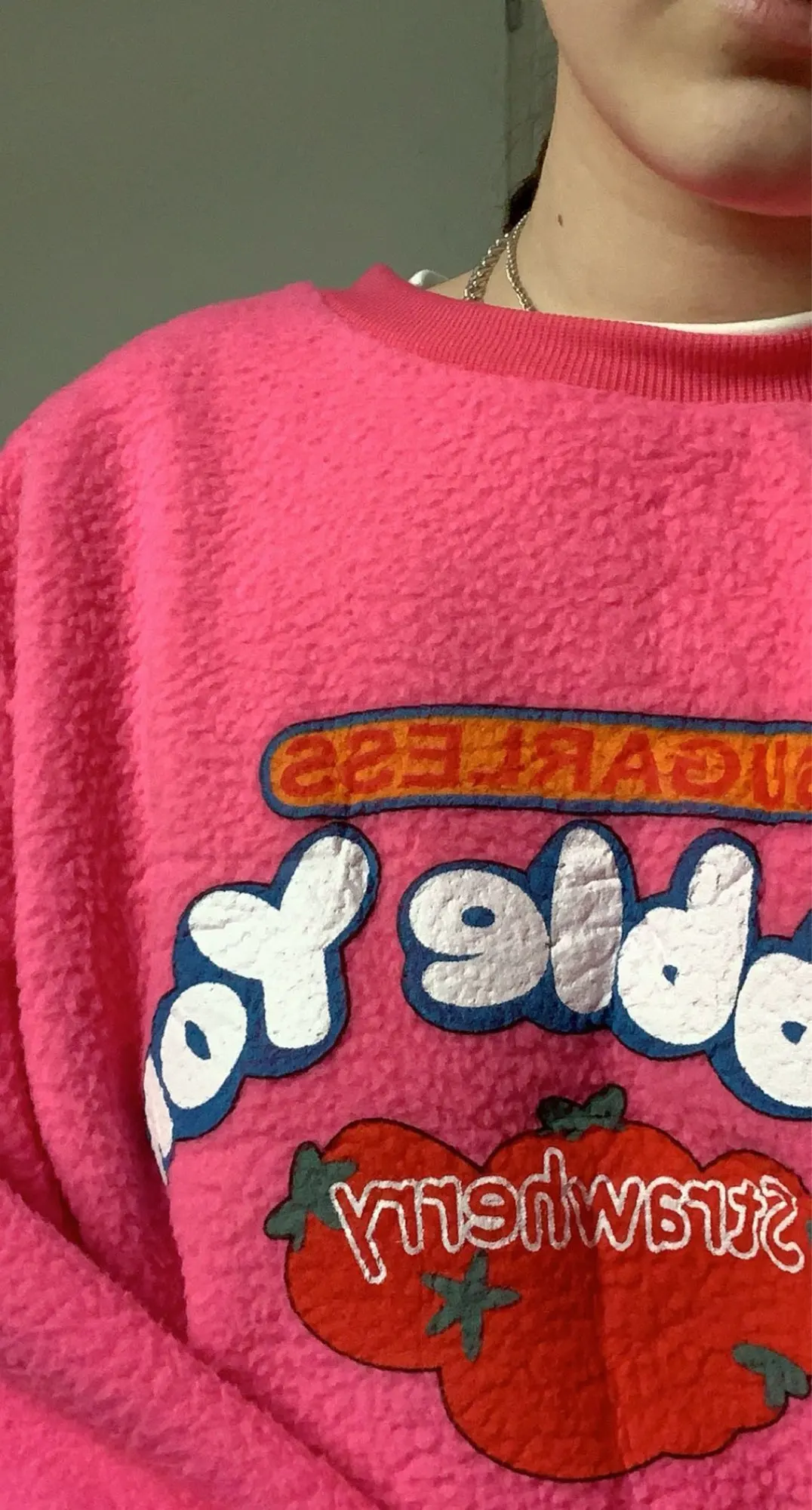 it’s really soft but there’s a spelling error on it. it says “strawherry” which is kind of funny but from a distance i’m sure no one can tell haha