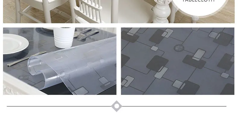 Скатерть из ПВХ, прозрачная, из мягкого стекла, прямоугольная, водонепроницаемая, маслостойкая, защитная крышка для кухонного обеденного стола