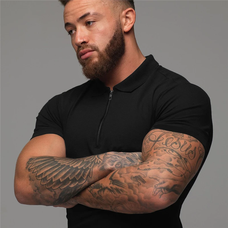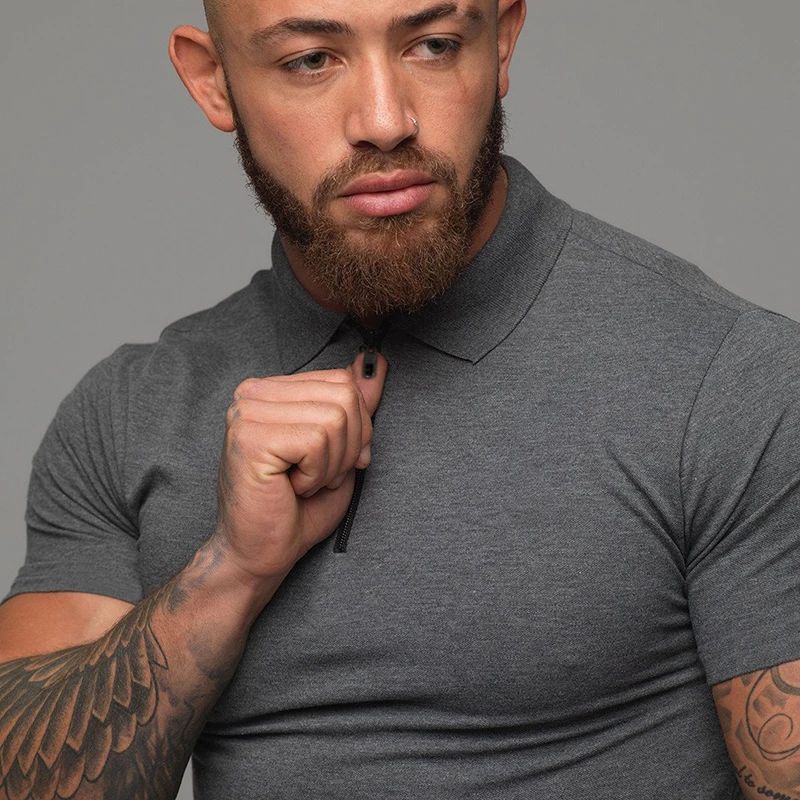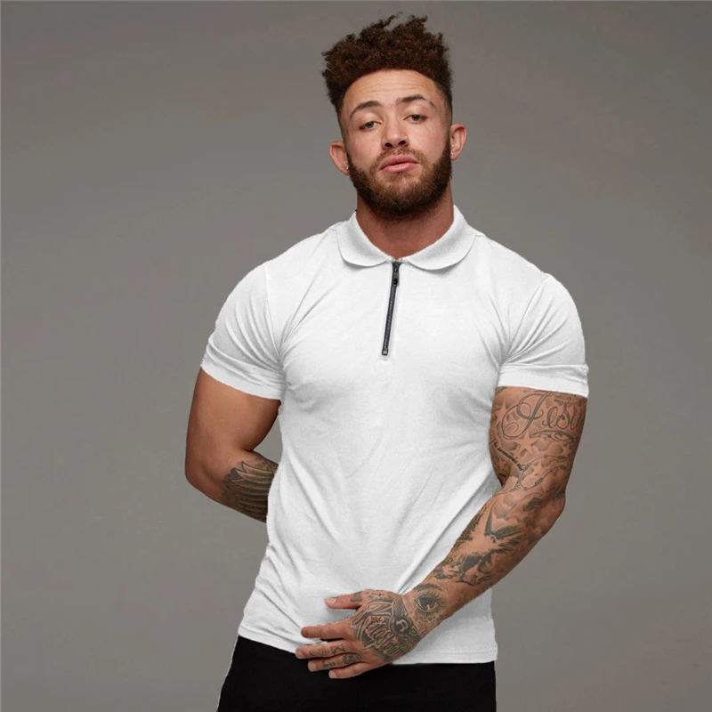 Мужская рубашка поло Muscleguys, Повседневная модная однотонная тонкая рубашка-поло с коротким рукавом высокого качества для фитнеса, homme