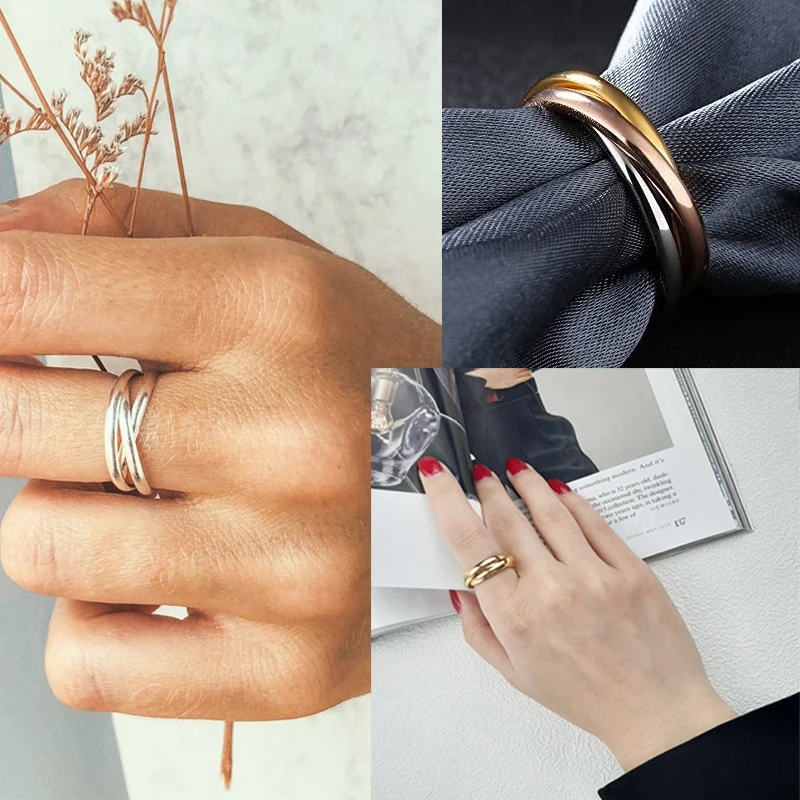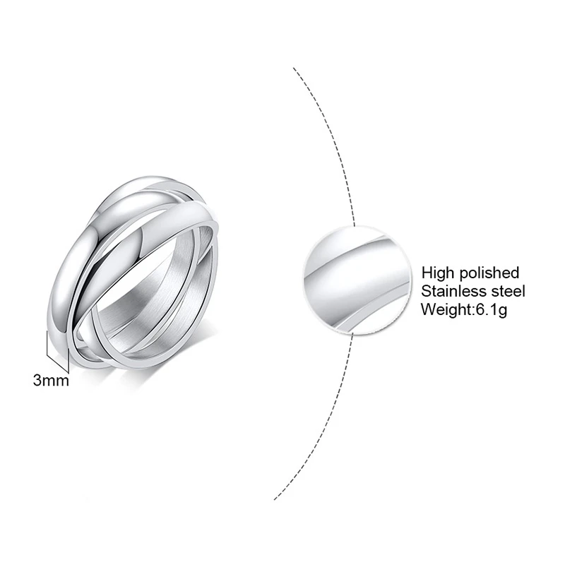 Кольцо женское серебристое, 3 в 1, из нержавеющей стали
