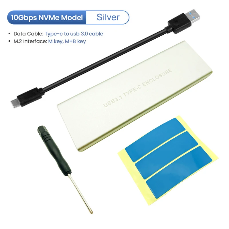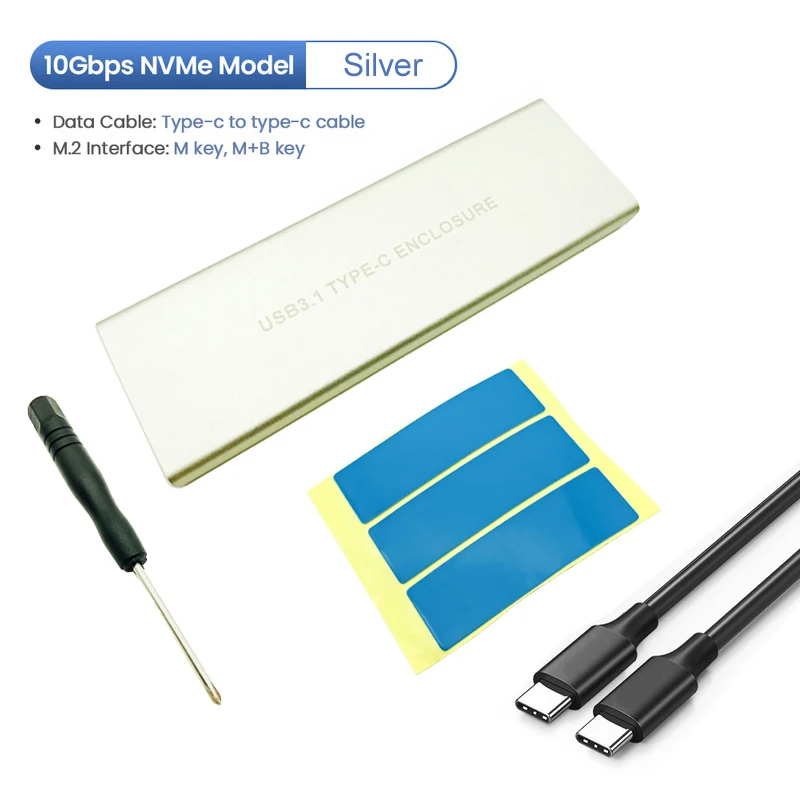 Корпус для жесткого диска NVMe PCIE, USB 3,1, M.2 на USB SSD корпус для жесткого диска, Type-C, 3,1 м, соединитель в форме ключа для 2230, 2242, 2260, 2280