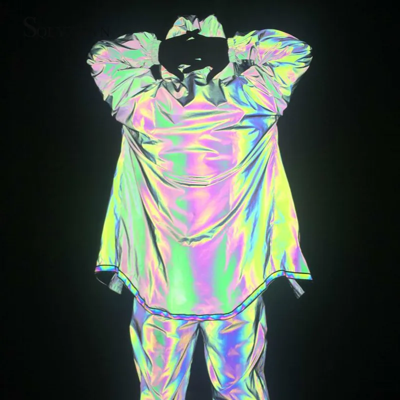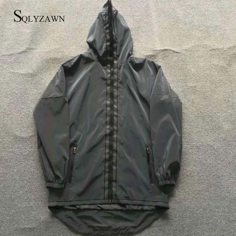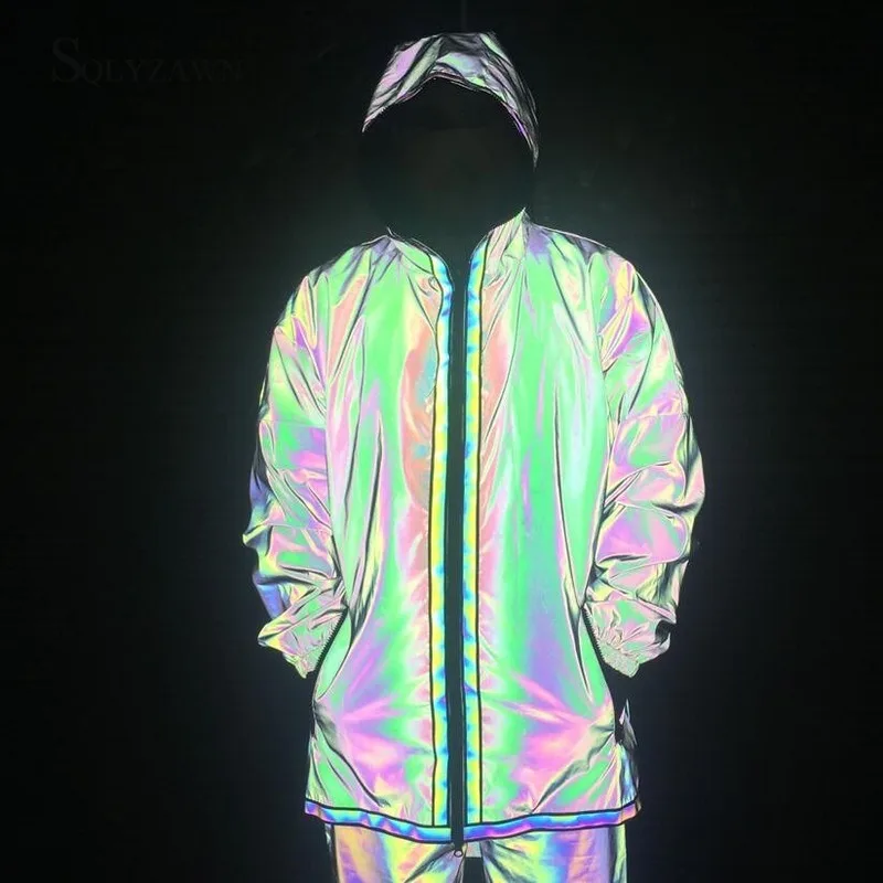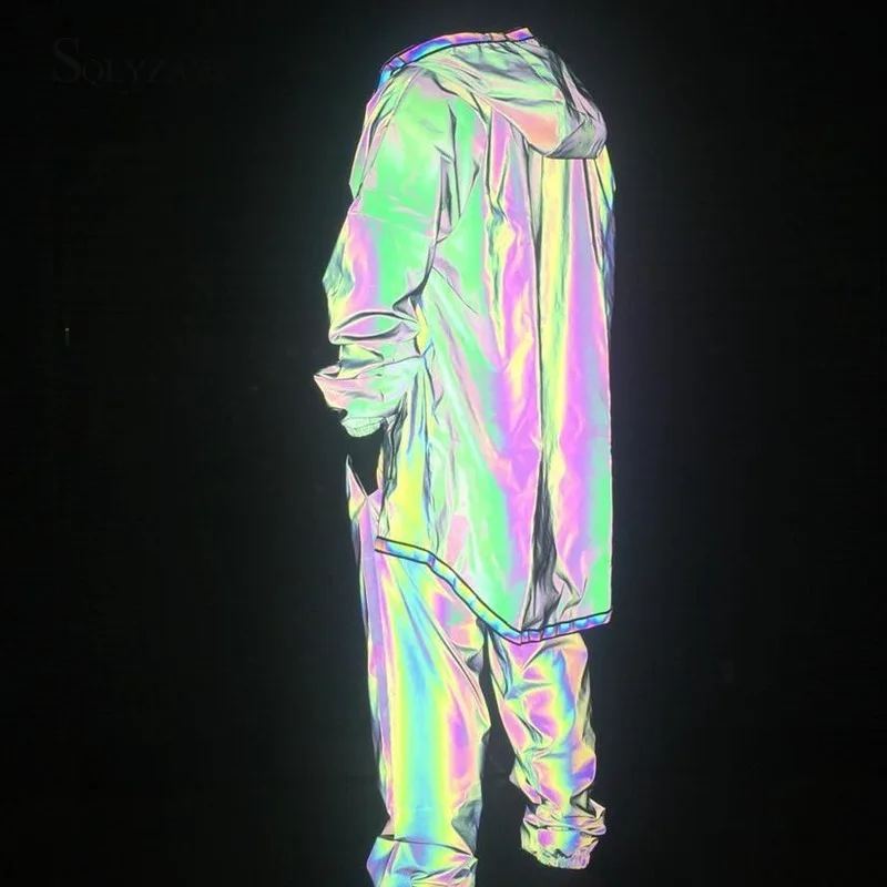 Светоотражающий голографический тренчкот на молнии для мужчин, тонкое длинное пальто в стиле панк, уличная одежда, ветровка