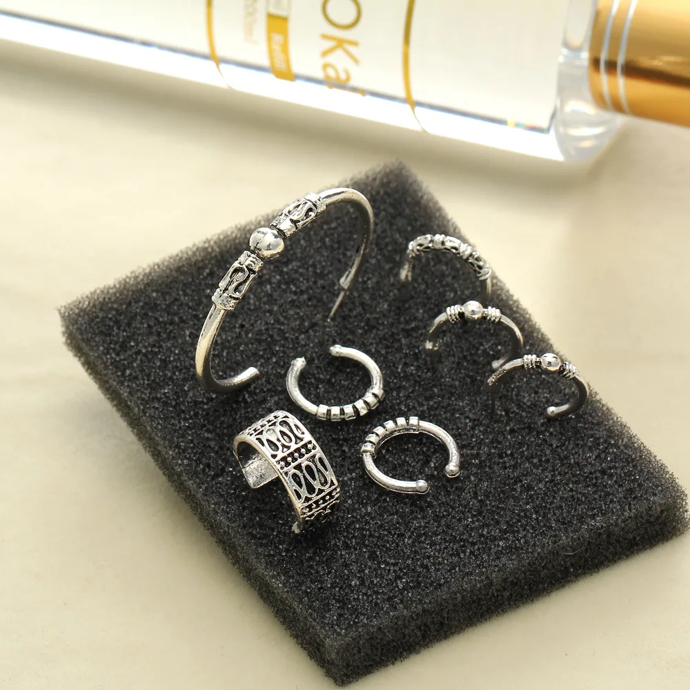 Винтажные серебряные маленькие набор серег-колец в стиле бохо классические минималистичные очаровательные металлические серьги-кольца для женщин Модная бижутерия
