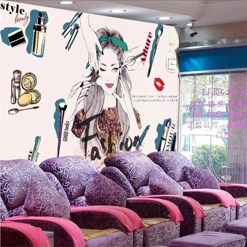 Европейская и американская ручная роспись косметики маникюрный магазин макияж фоновая бумага для стен 3D салон красоты настенная бумага 3D