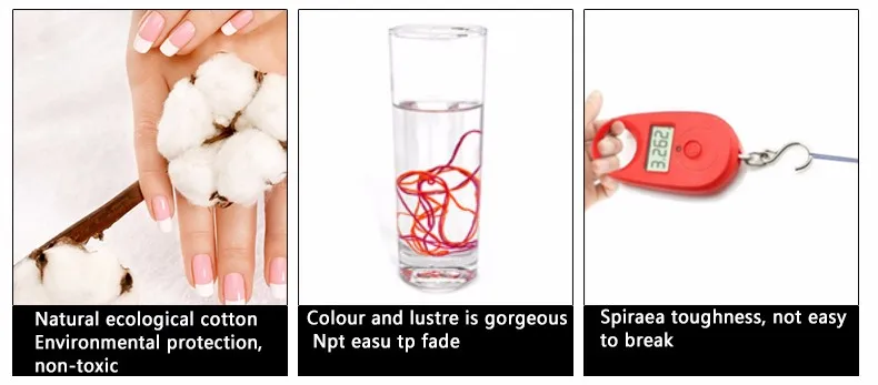 Экологического хлопка детали Выберите экологическую линию из полиэстера и хлопка для защиты окружающей среды, Защита окружающей среды и долговечность; Полный цвет на производственной линии DMC, красочный; Линия на поверхности короткого волокна, делает более полными вышитые работы!