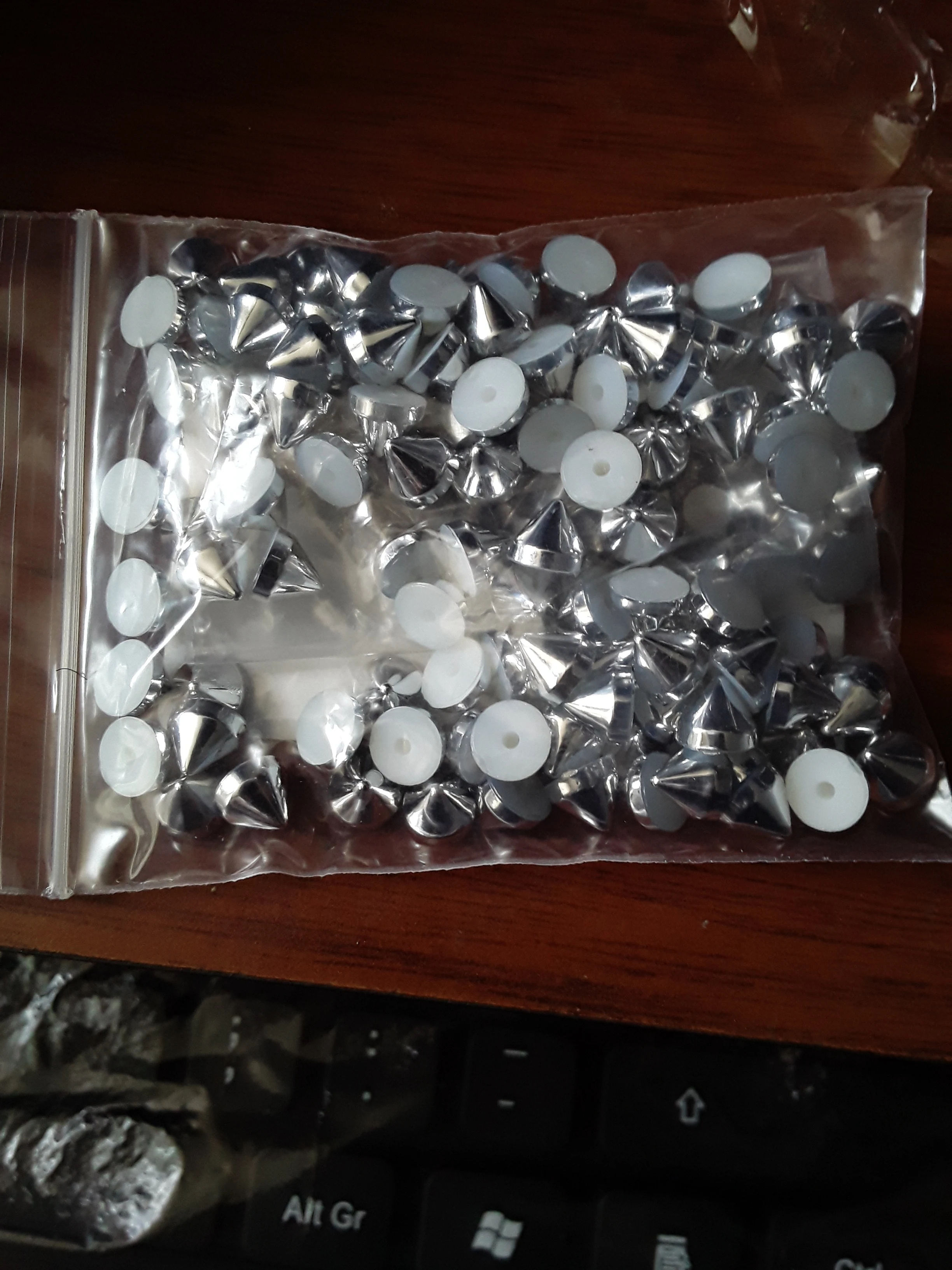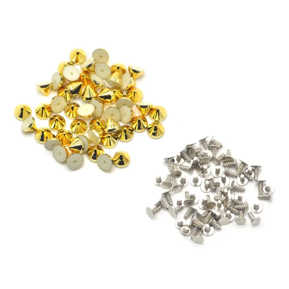 KALASO 100 Наборы серебристые золотые черные покрытые акриловые конусные панк-шпильки заклепки шипы для обуви сумки украшения одежды 6, 5x5 мм