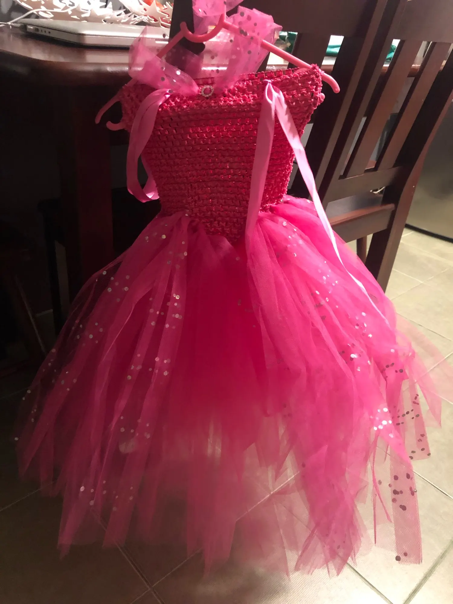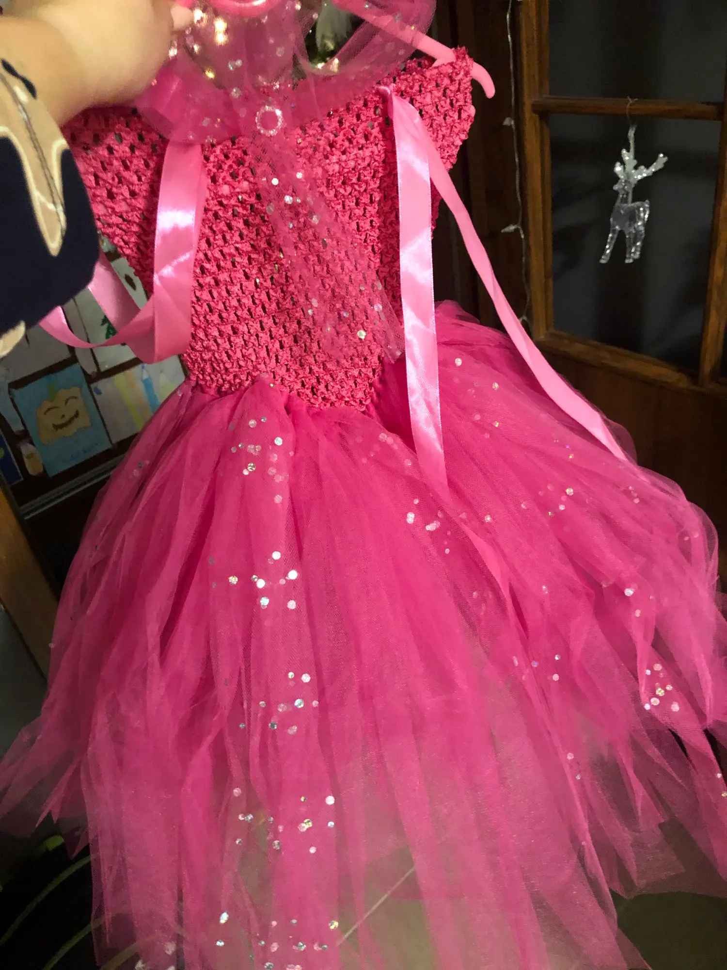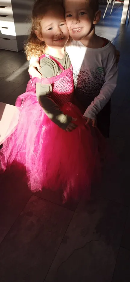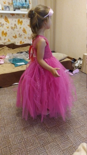 платье красивое, пышное, сделано аккуратно, на рост 122 взяла 7 и длина не впол, нормально ходить удобно, но есть нюансы, нет подьюбника и это неудобно, придется самой сделать и верхняя кофта просто сетка, но у нас ни чего не просвечивает, но постарше девочкам может не подойти. а так дочь счастлива, благодарю за быструю доставку.