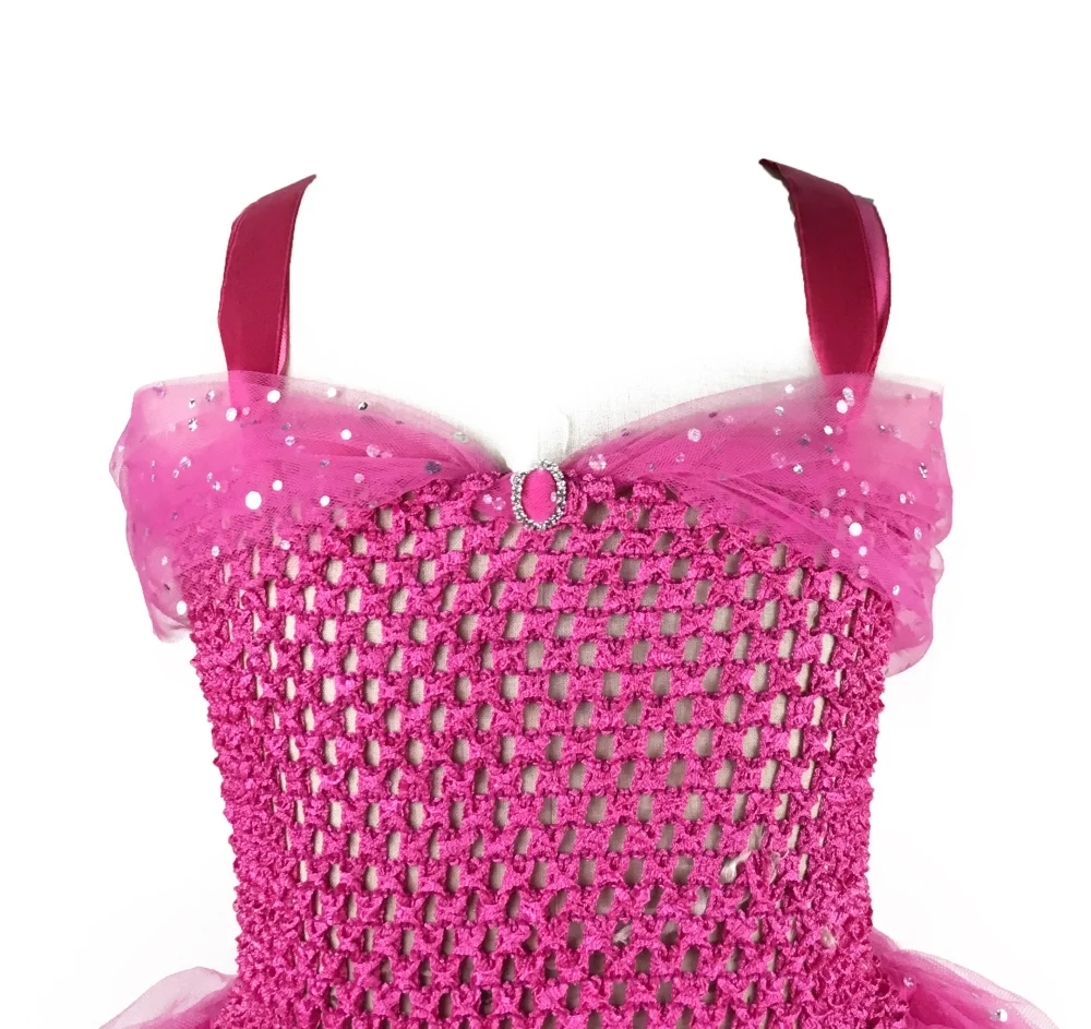 Платье-пачка детское, розовое, с блестками, вязаное крючком
