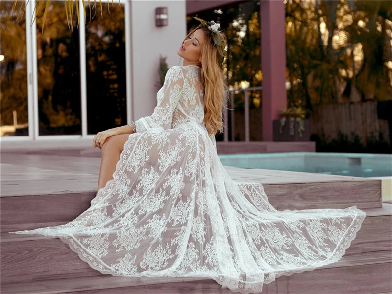 Винтажное шикарное женское пляжное платье миди с длинным рукавом и ...