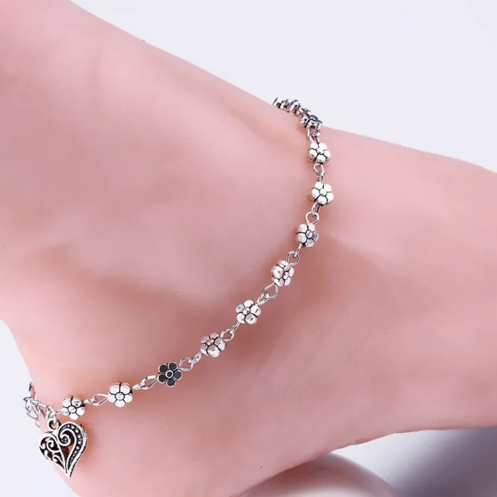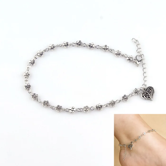 Браслет На Ногу Женский с цветами и сердцем, Ювелирное Украшение На...