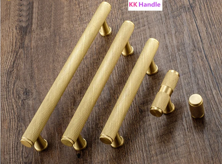 Простые золотистые ручки для кухонного шкафа с рифленойтекстурой, латунные Т-образные ручки для ящиков в спальню, фурнитура для шкафа