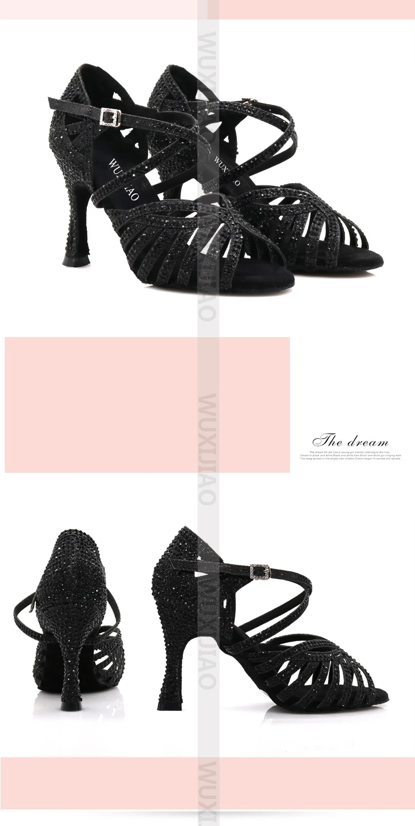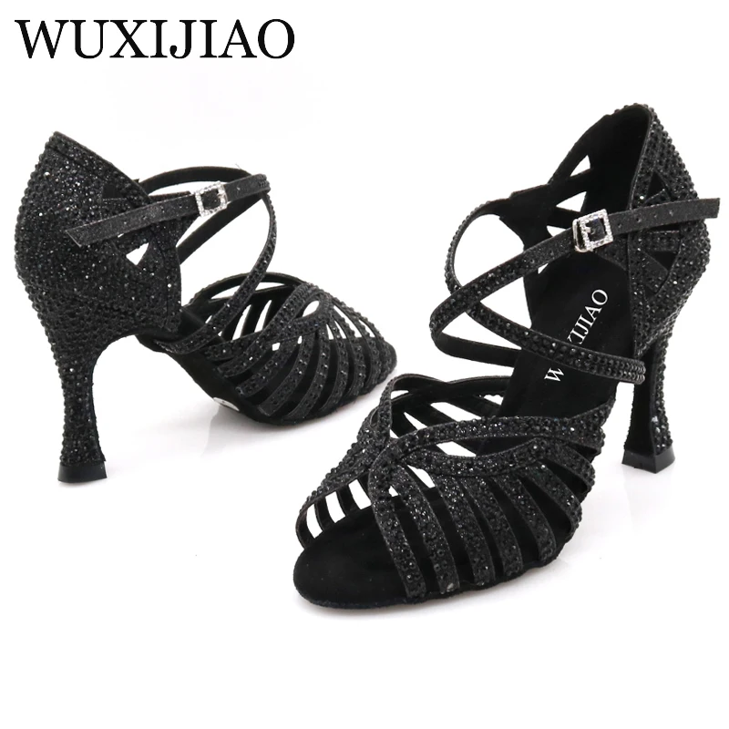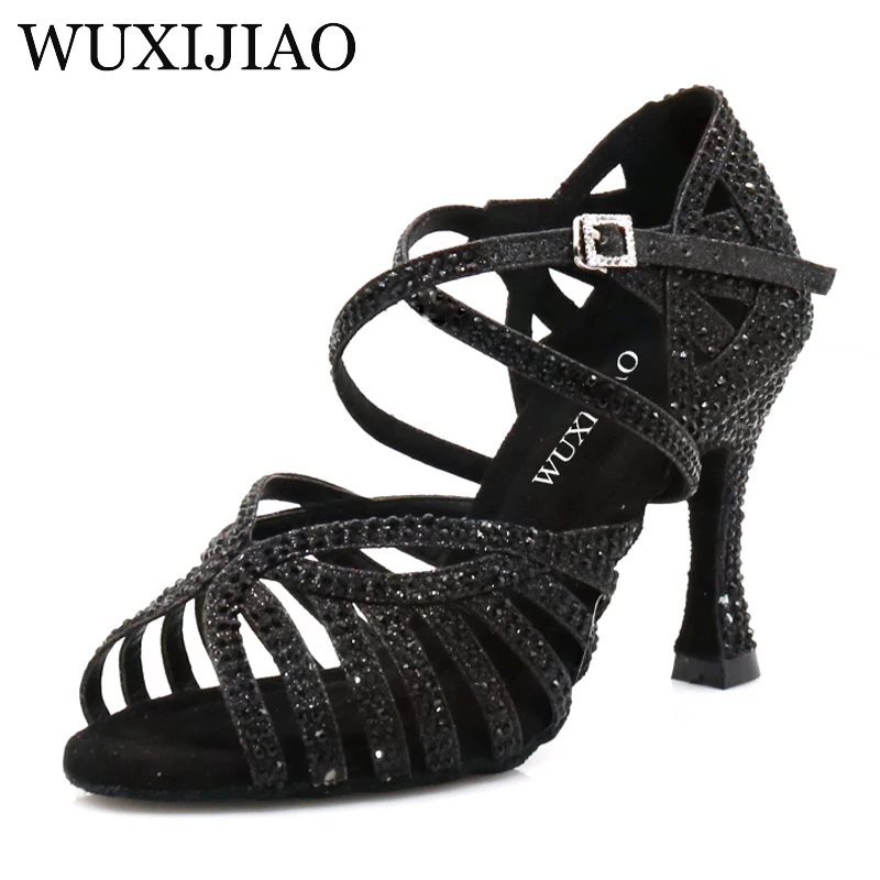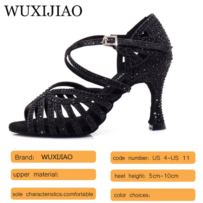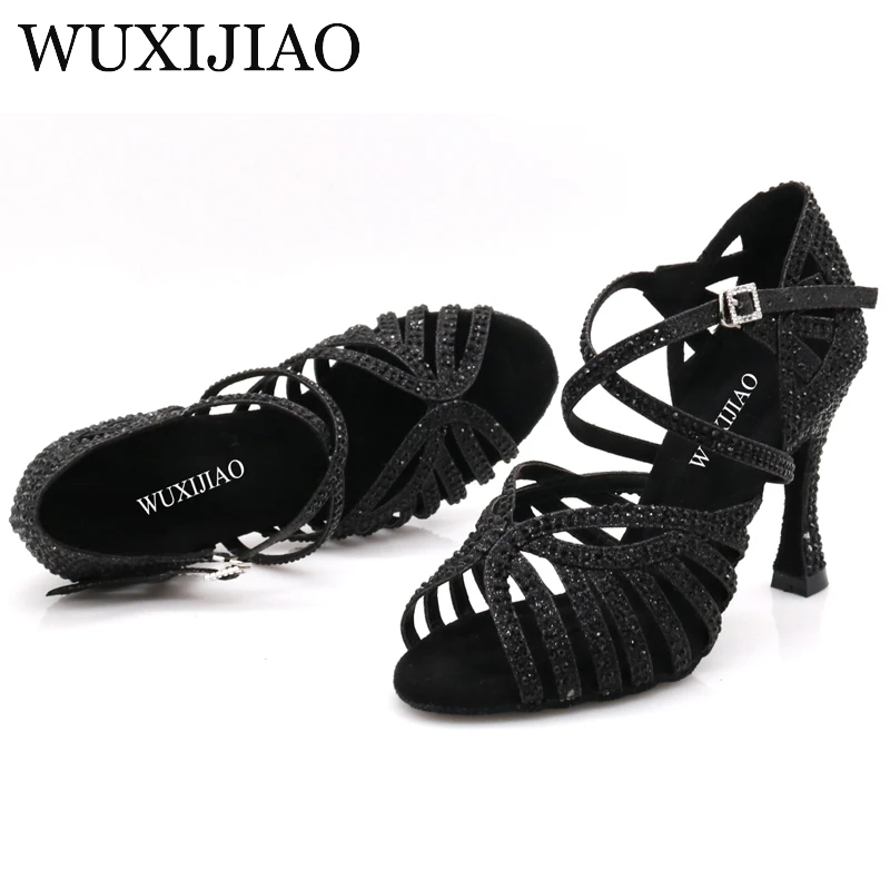 Туфли WUXIJIAO для латиноамериканских танцев, женские туфли с золотистыми блестками для бальных танцев, обувь для сальсы на мягких каблуках