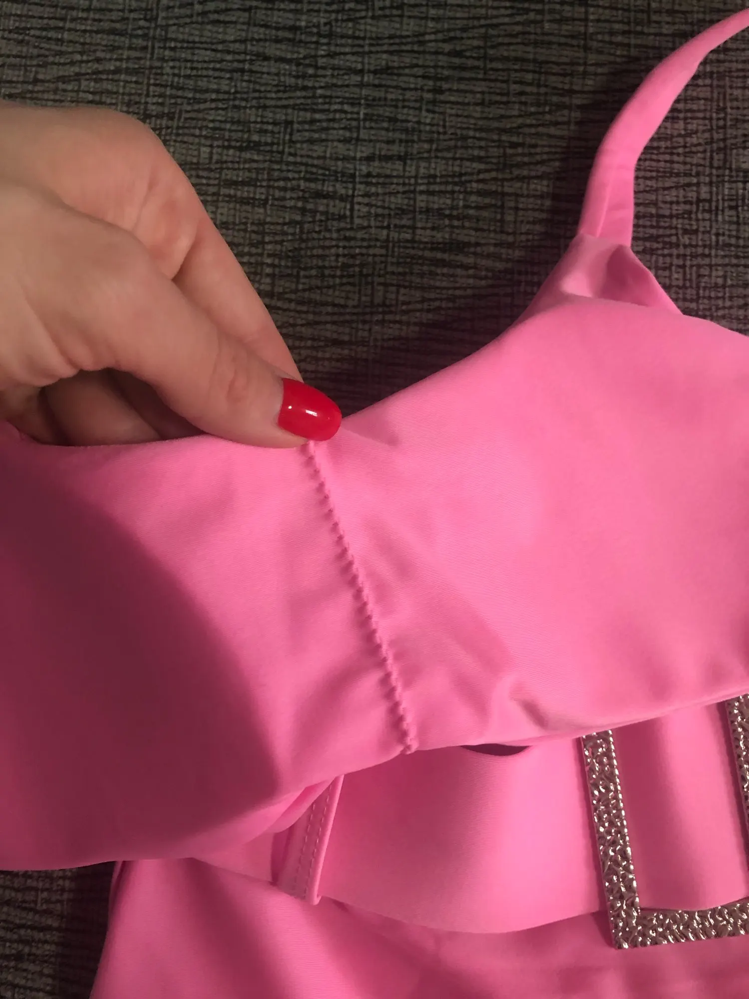 Качество на высоте! Швы ровные, аккуратные. Ткань чудесная. Очень модный и стильный дизайн! Цвет барби, насыщенный розовый) в нескольких местах торчали ниточки, но это не составит труда устранить! На параметры 88-65-90 брала S, подошло идеально!