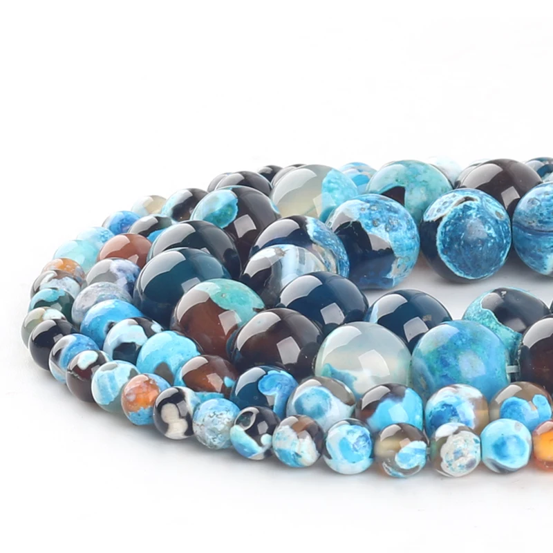 Бусы из натурального голубого огня из камня Агата, круглые бусины-разделители для самостоятельного изготовления ювелирных изделий, 15 дюймов, 681012 мм, бусины для рукоделия