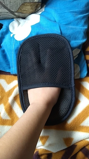 Посылку получил, 17 дней до Нижегородской области. "Перчатка" представляет из себя материал (по форме врежка-голичка), с одной стороны сеточка, для пальцев, с другой, меховая накладка. Опробую "перчатку" отзыв дополню. Продовца советую.
