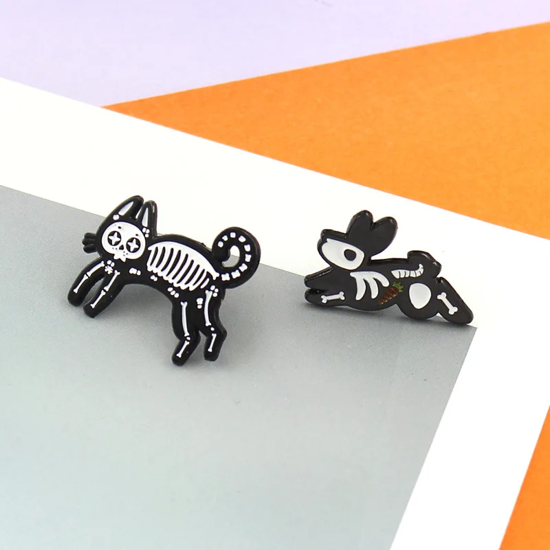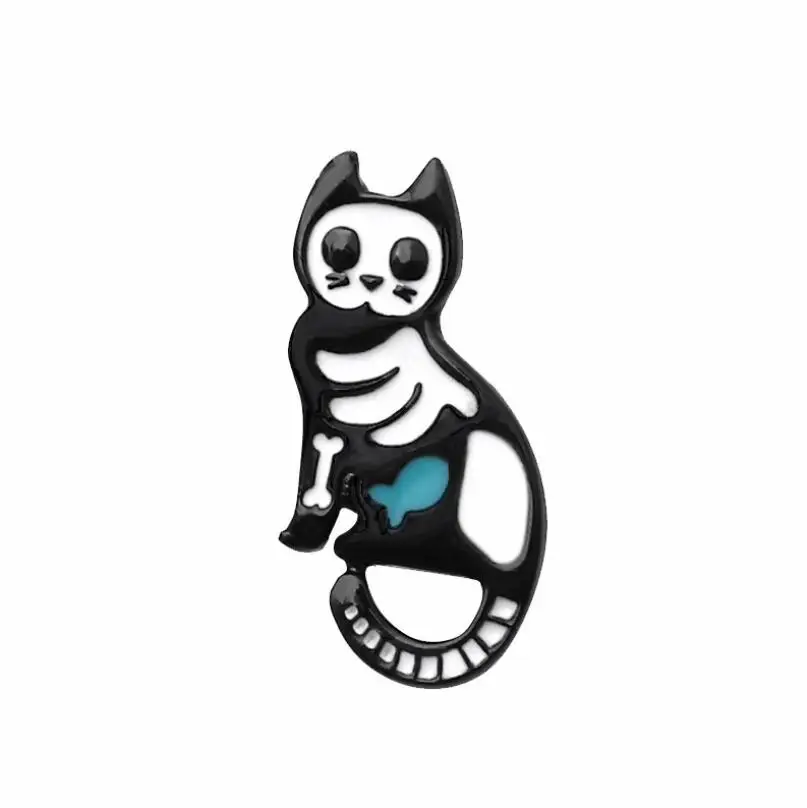 Эмалированные булавки в форме скелета животных, кошка, собака, птица, брошь, джинсовая одежда, рюкзак, модные ювелирные изделия в виде животных, подарок для друзей