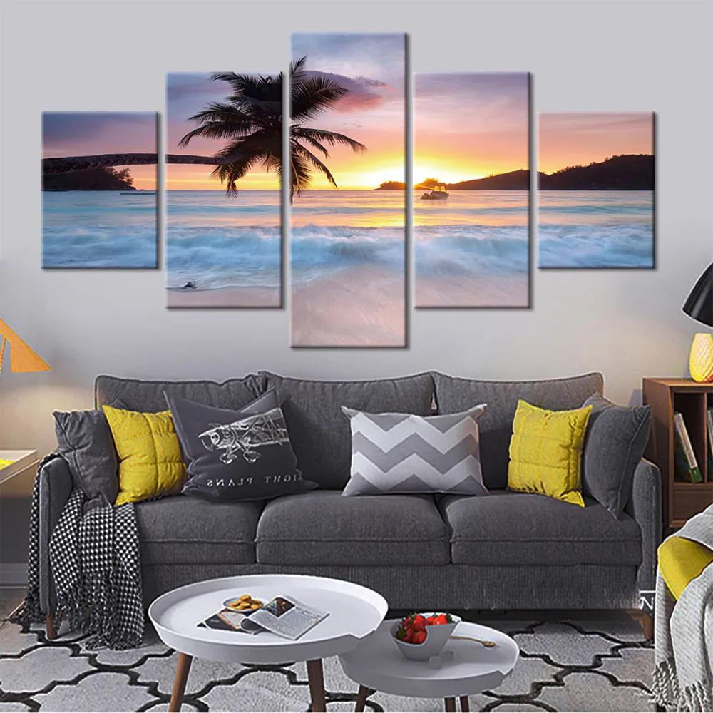 Модульная Картина на холсте, 5 панелей, постер с изображением морского берега, настенные картины, домашний декор