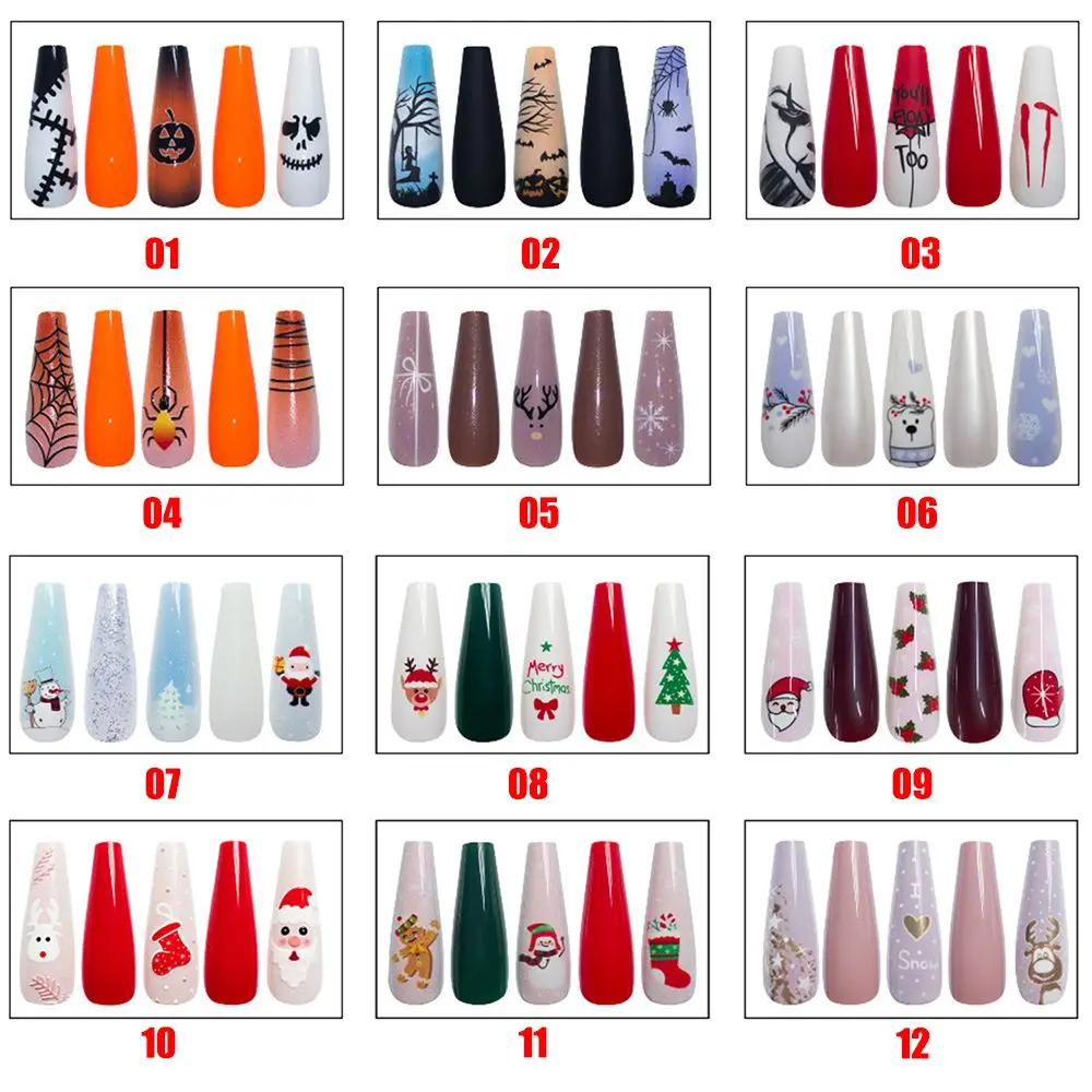 Многоразовые наклейки на ногти, 2430 шт., акриловые, полностью закрывают искусственные ногти, рождественские Типсы, инструменты для дизайна ногтей