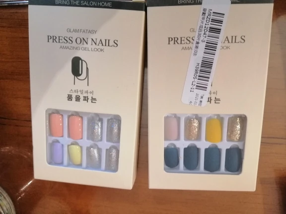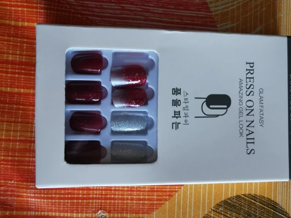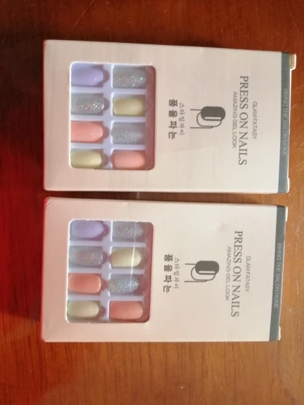 Очень быстрая доставка (2 недели), цвет очень похож на фотографии, их можно обрезать и подать. Они приходят со всем, чтобы иметь возможность надеть их, типичный жидкость для накладных ногтей, гель, палка "наранджо" и Лима, и они приносят 24 ногтя.