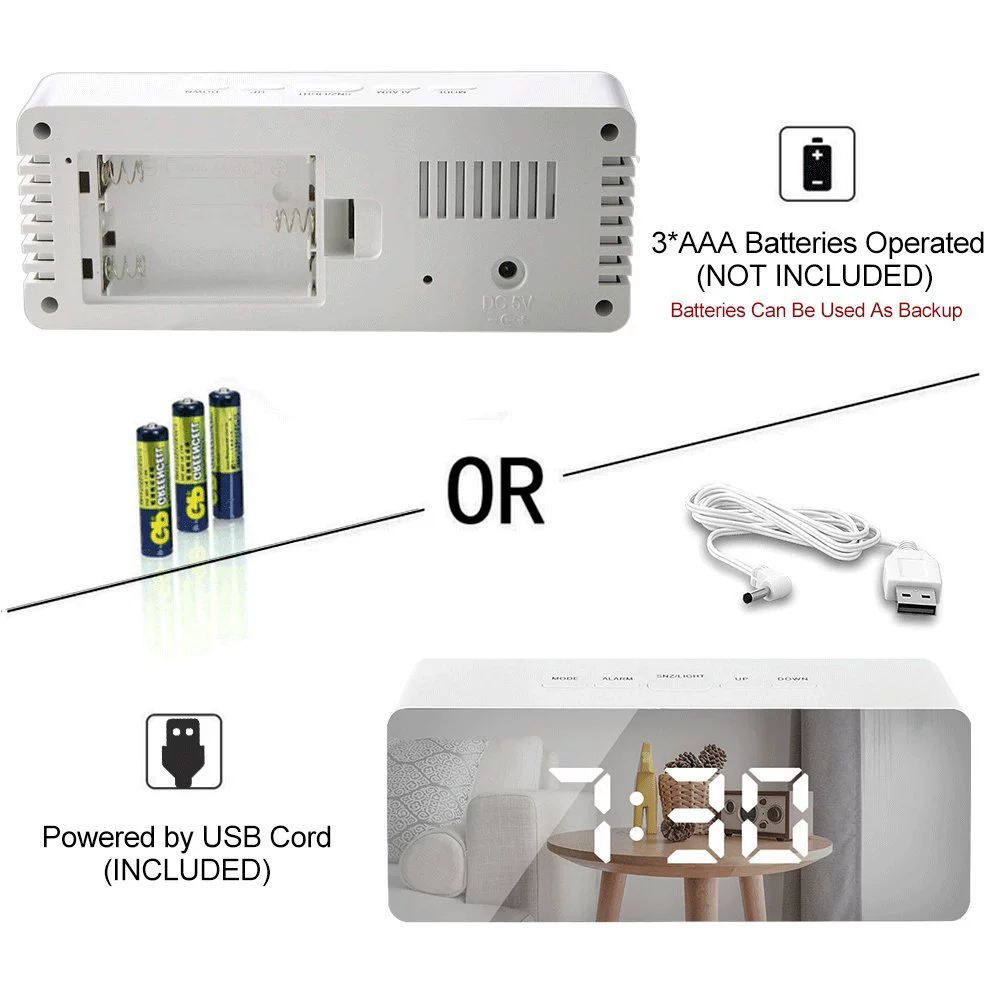 Настольный светодиодный электронный будильник, Цифровые зеркальные USB часы, утренние часы, Светящийся индикатор времени и температуры, украшение для дома