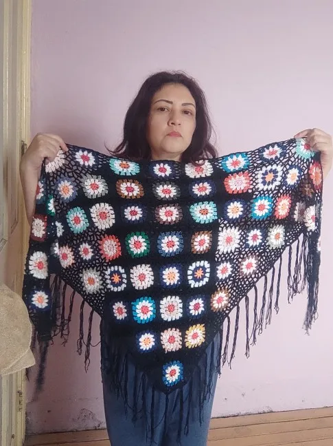 Я очень недовольна этой шалью. Я думал, что предложу его на Рождество, но я не буду делать это, потому что буду смешным. Это почти не размер кукольной шали. Изображение обманчивое. Используется более тонкая шерсть. Тем не менее, цена является непропорциональной из-за посредственности в данной модели. Я попрошу вернуть деньги.