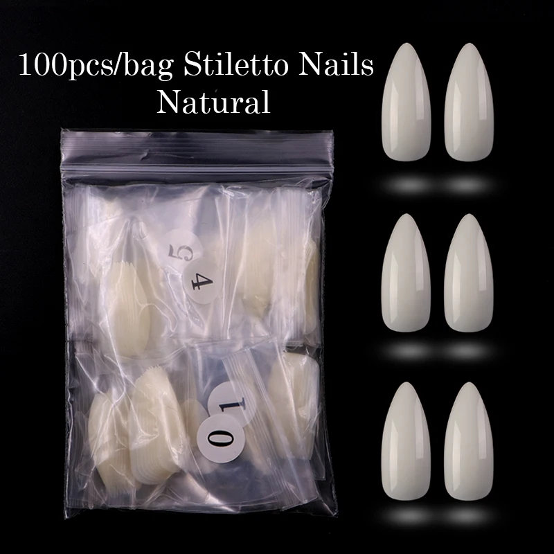 Длинные стилеты, 100 шт.opp, накладные ногти, белыепрозрачныенатуральные, острые, накладные, Маникюр для кончиков ногтей искусственные ногти, салон