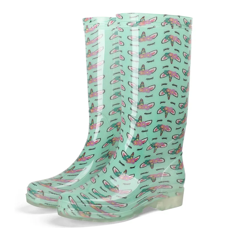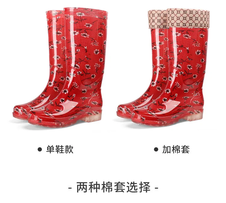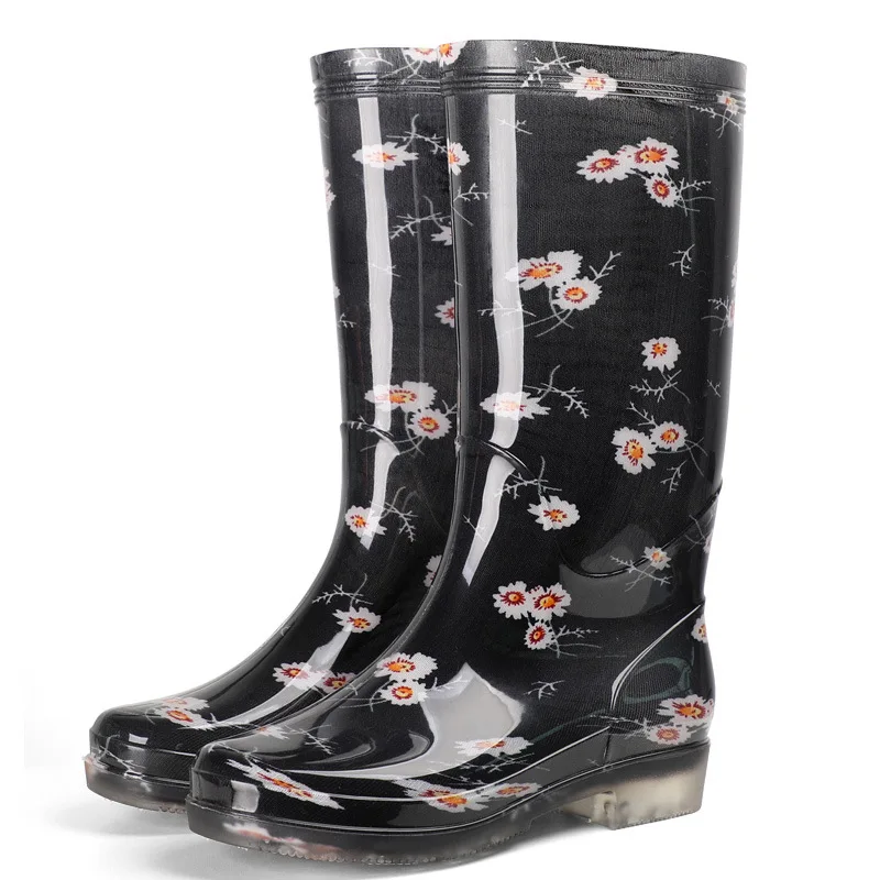Новинка, непромокаемая обувь, женские непромокаемые сапоги с принтом, Нескользящие износостойкие непромокаемые сапоги с высоким берцем на резиновой подошве